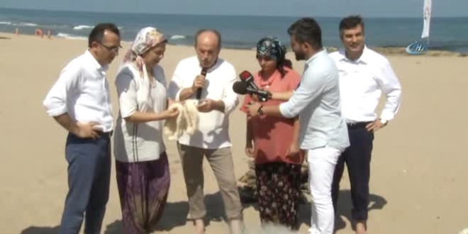 Şile bezinin ipliğini yoğuran, kaynatan ve denizde yıkayarak, kuruması için kuma seren Başkan Topbaş ve Şile Belediye Başkanı Can Tabakoğlu, renkli görüntüler verdi.