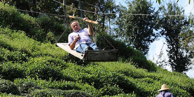 Çayeli ilçesine bağlı Hassadıklar Mahallesi'nde yaşayan 54 yaşındaki Kur, yolu olmaması nedeniyle evine ulaşım için kurduğu 100 metre uzunluğunda ve 5 metre yükseklikteki ilkel teleferiği kullanıyor.