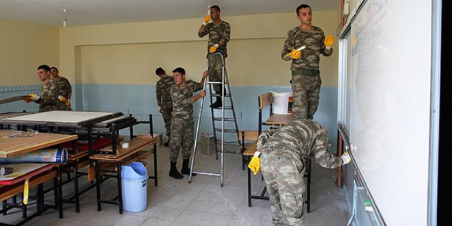 Doğu ve Güneydoğu Anadolu'da terör örgütlerine yönelik başarılı operasyonlar yürüten Mehmetçik, Muş'ta bir okulun onarımını gerçekleştirerek eğitime katkı sundu.