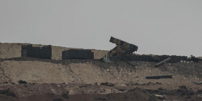 Kilis'te sınırda konuşlu bulunan çok namlulu roketatarlar (ÇNRA) Afrın'deki PKK/PYD terör örgütü mevzilerini ateş altına aldı