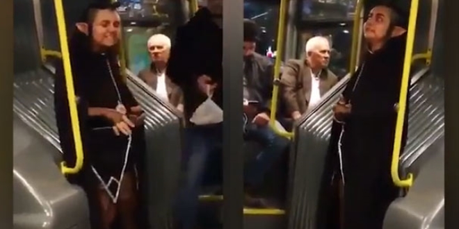 Metrobüs'te yolculuk eden bir kadın yolcu görenleri şaşkına çevirdi! 2 gün önce çekildiği iddia edilen görüntülerde, Yenibosna durağından binen bir kadın yolcu herkesi şaşkına çevirdi
