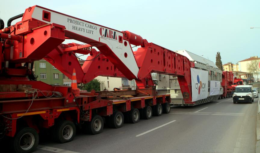 Güzergah üzerindeki battı çıktı ve yaya köprüsü geçişlerinde çekicinin yükseklik ayarı yapılarak yol alması sağlandı.