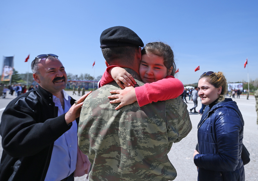 Yemin törenini coşkuyla izleyen aileler tören sonunda çocuklarıyla buluşurken duygu dolu anlar yaşandı.