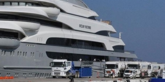Aydın, Kuşadası ilçesindeki Ege Port Limanı'na yanaşan Rusya'nın çelik ve metal kralı Viktor Rashnikov'a (69) ait, 144 metre uzunluğundaki 'Ocean Victory' isimli mega yata, 23 tanker yakıt alındı