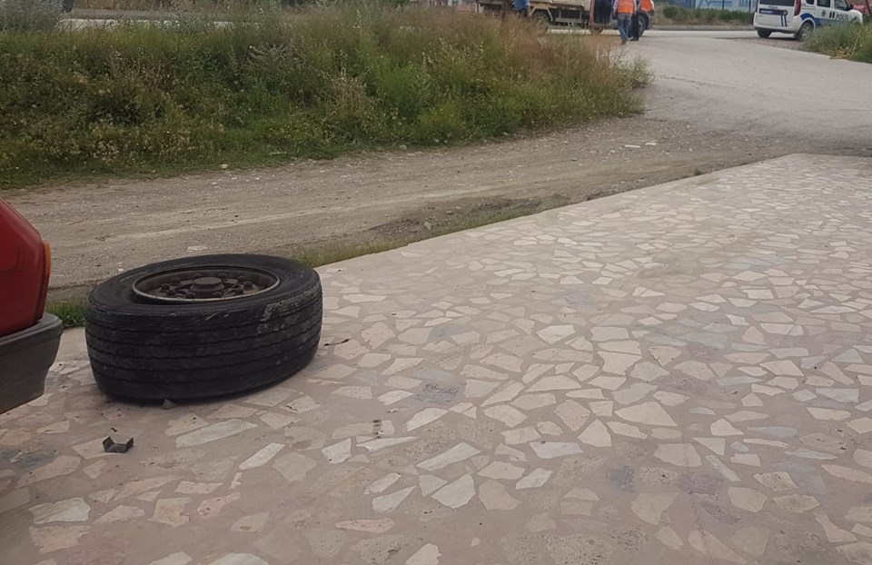 Alınan bilgiye göre, ilçe merkezinden geçen D-100 karayolunda seyir halindeki Sebahattin Şen'in kullandığı TIR'in dorsesindeki lastiklerinden biri patladıktan sonra fırladı.