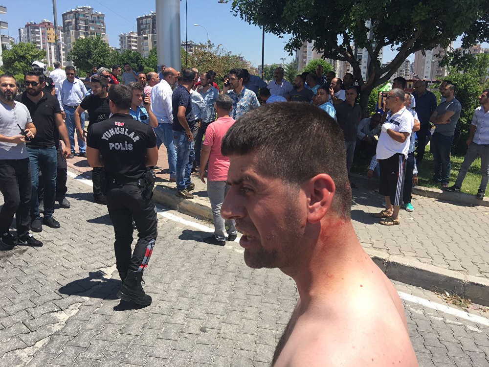 Adana'da minibüs ve otobüs kooperatiflerinin yol güzergahı nedeniyle yaklaşık 200 kişinin karıştığı taşlı- sopalı kavgayı görenler film çekildiğini zannettiklerini söyledi.
