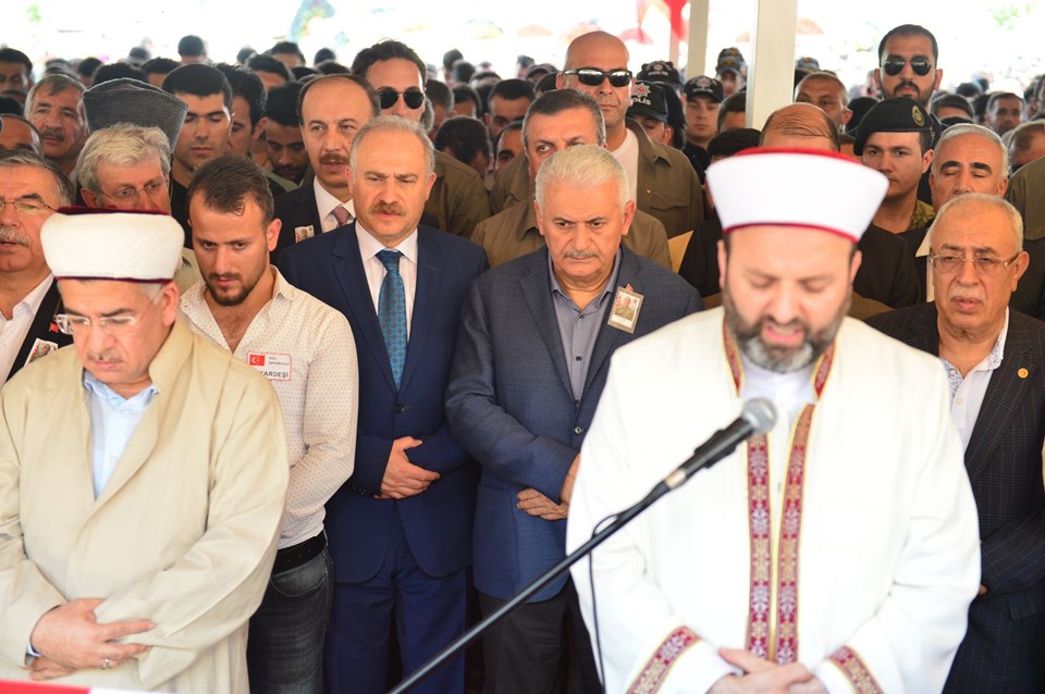 İl Müftüsü İhsan Açık'ın kıldırdığı cenaze namazının ardından, Başbakan Yıldırım, şehidin Türk bayrağına sarılı tabutunu bir süre omzunda taşıdı.
