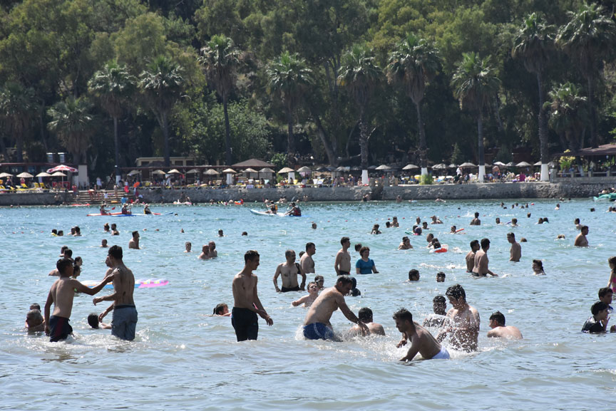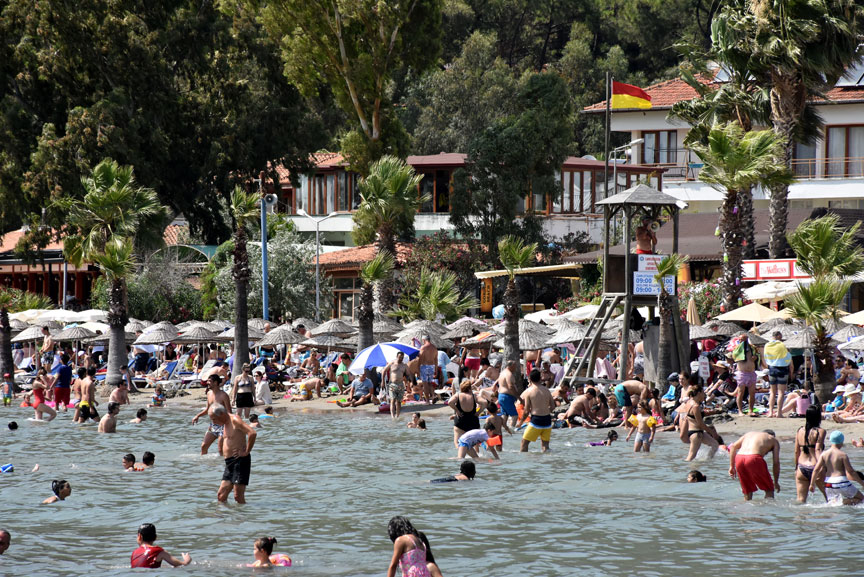 Ramazan Bayramı tatili için Güney Ege'nin gözde turizm merkezlerine gelerek otellere yerleşen turistler, hava sıcaklığının 35, deniz suyu sıcaklığının da 24 dereceyi bulduğu Muğla'da deniz kenarlarında yoğunluk oluşturdu.