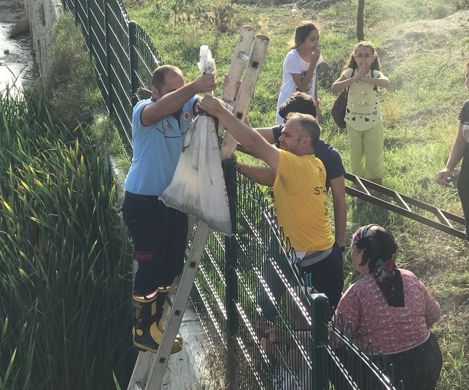 Alınan bilgiye göre, ilçeye bağlı Çukuryurt Mahallesinden geçen dereden kedi sesi geldiğini duyan vatandaşlar durumu itfaiyeye bildirdi.