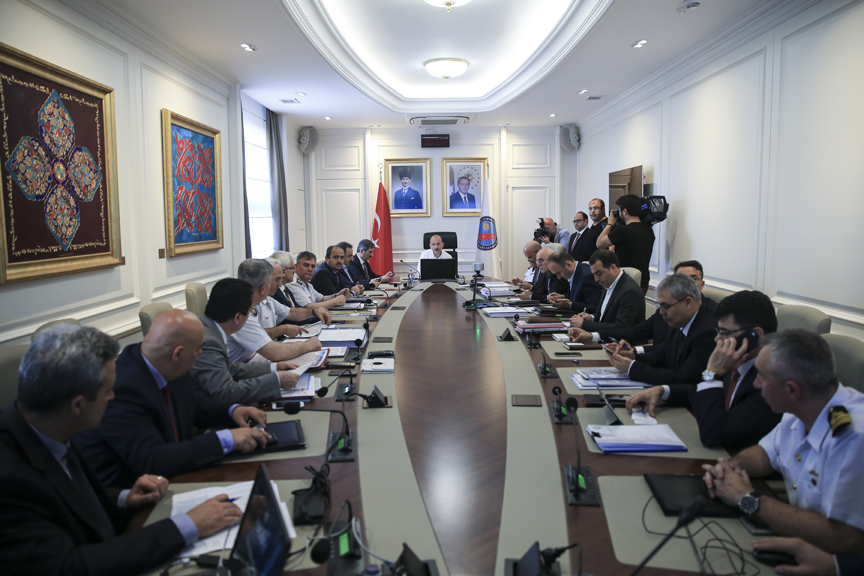İçişleri Bakanlığında oluşturulan Seçim Güvenliği Koordinasyon Merkezinde seçim güvenliği tedbirlerini anbean izleyen Bakan Soylu'ya İçişleri Bakanlığı Müsteşarı Muhterem İnce, Jandarma Genel Komutanı Orgeneral Arif Çetin, Emniyet Genel Müdür Vekili Erhan Gülveren, Mahalli İdareler Genel Müdürü Ekrem Canalp, Güvenlik ve Acil Durumlar Koordinasyon Merkezi Başkanı Selim Çapar ve ilgili kurumların yetkilileri eşlik ediyor.