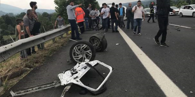 Anadolu Otoyolu'nun Düzce kesiminde otomobilin bariyerleri aşarak karşı yönden gelen 2 otomobille çarpışması sonucu 1 kişi öldü, 8 kişi yaralandı.
