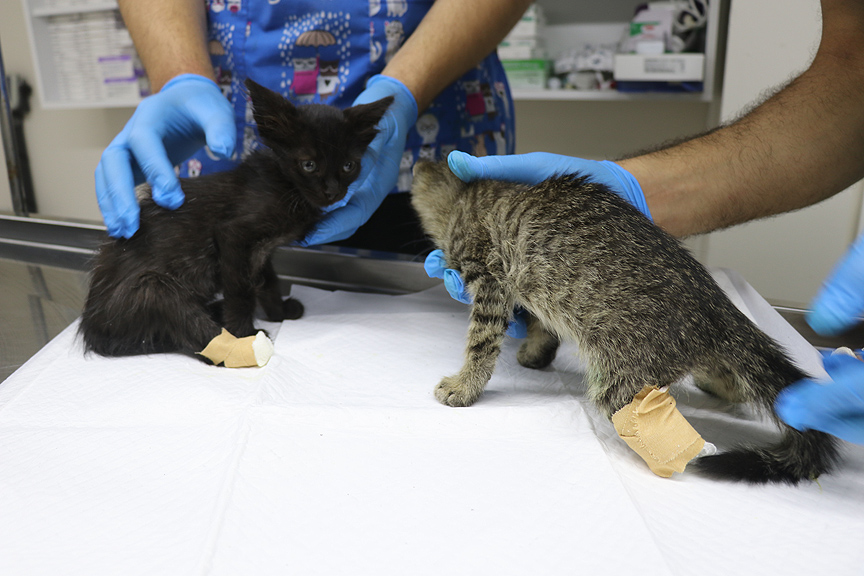 Yalova'da, birer arka ayakları kesilmiş halde bulunan iki kedi yavrusu tedavi altına alındı.
