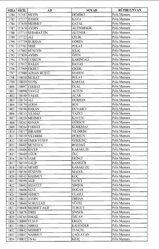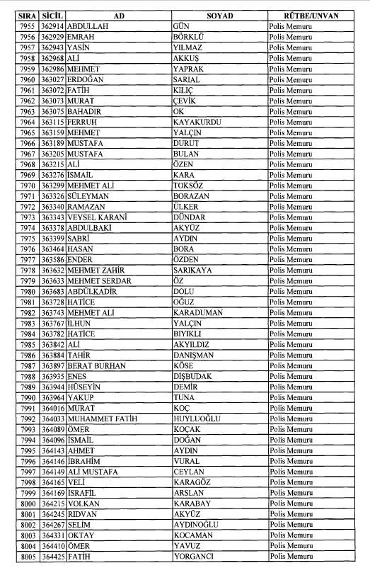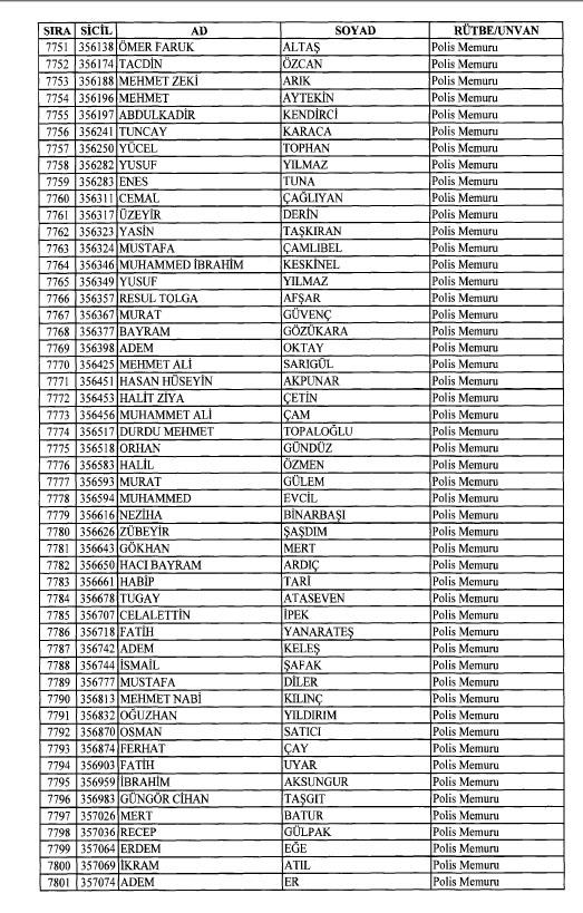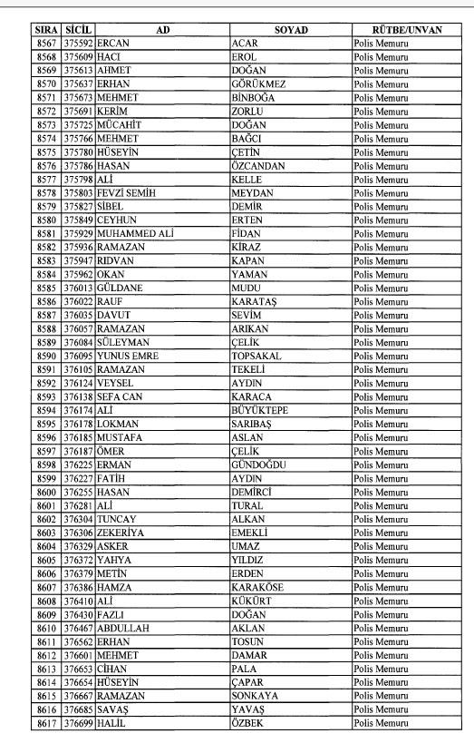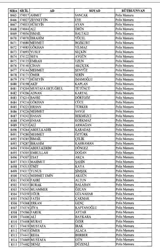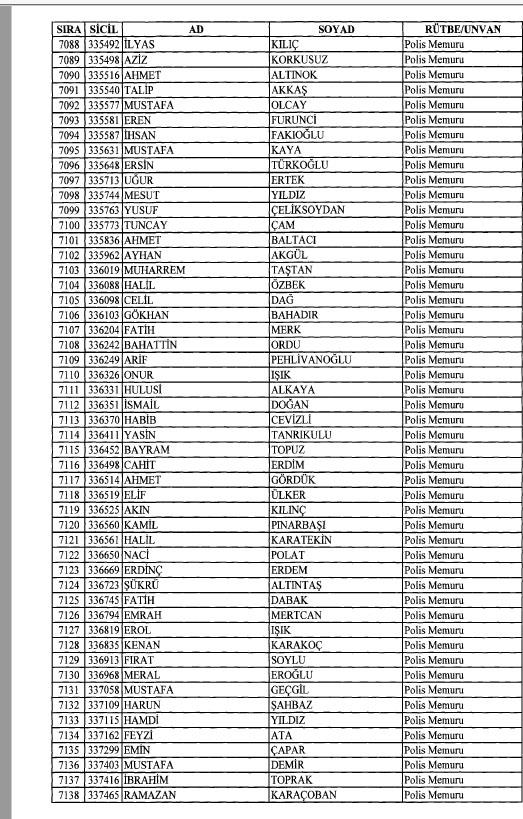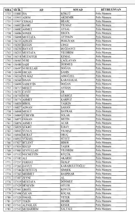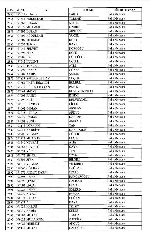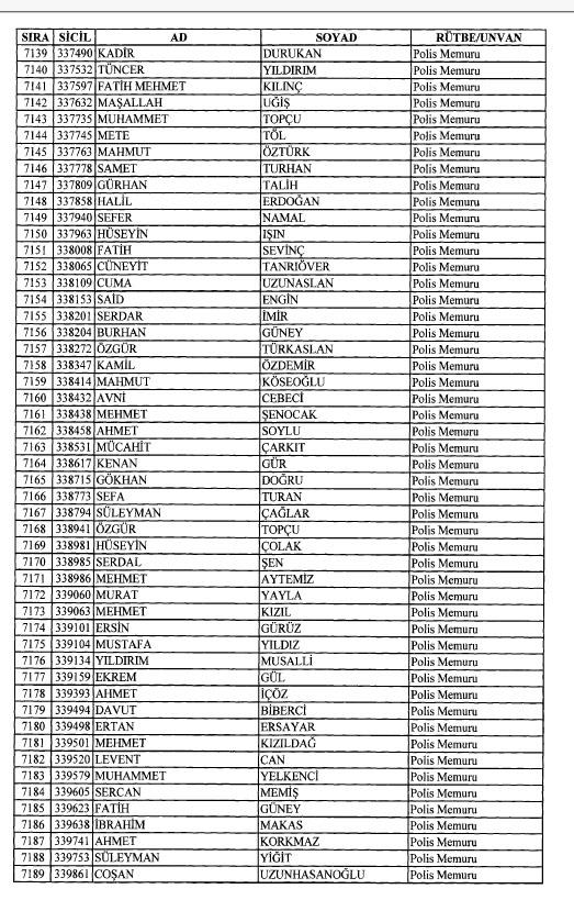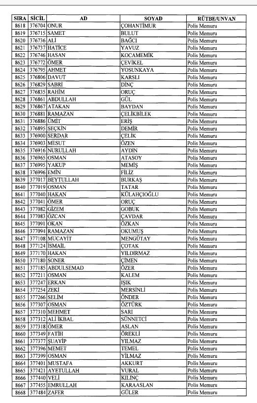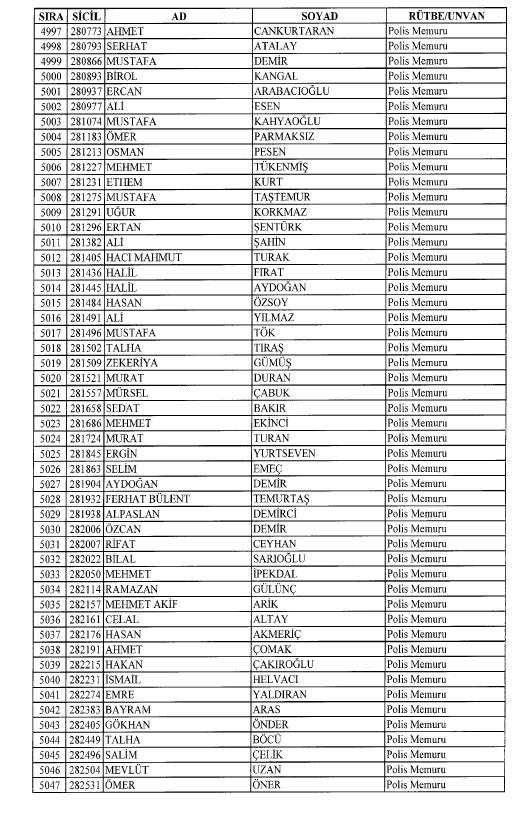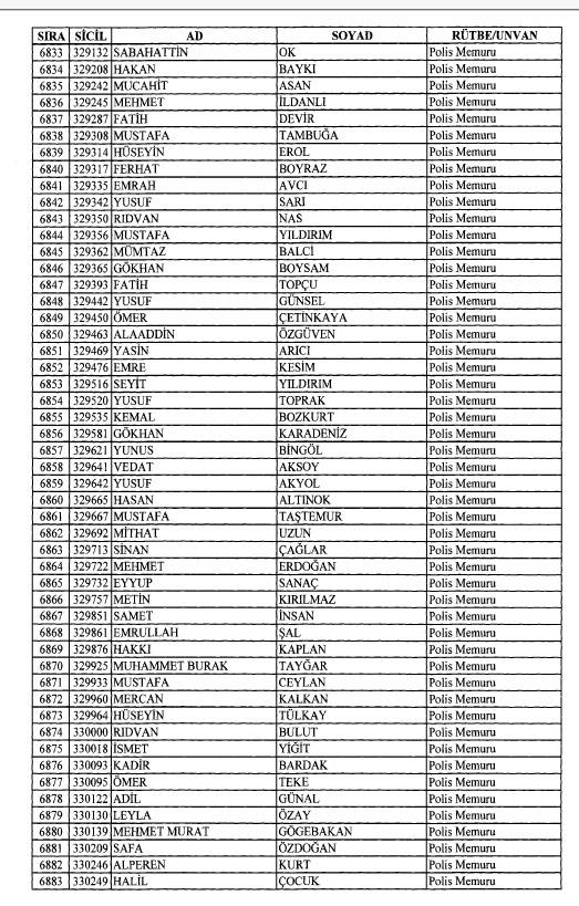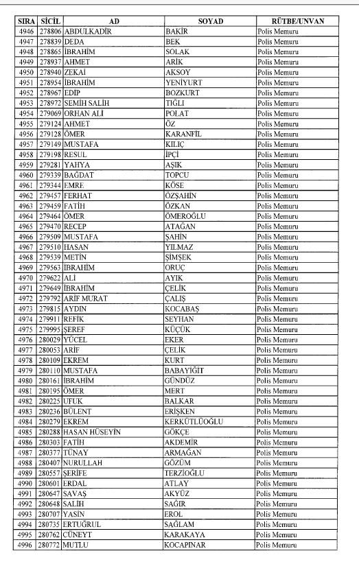 Emniyet'ten ihraç edilen 8 bin 998 personele ait liste