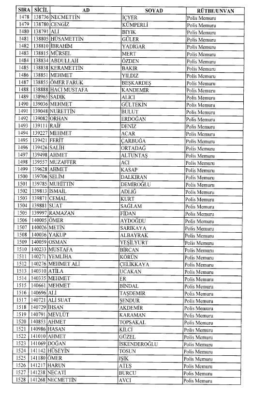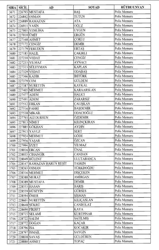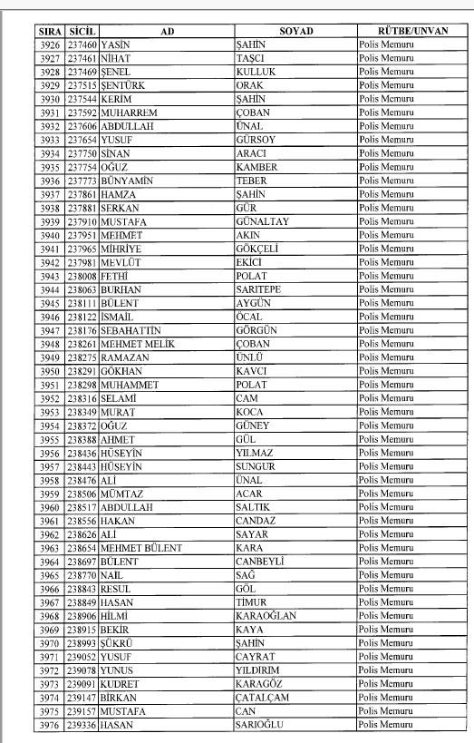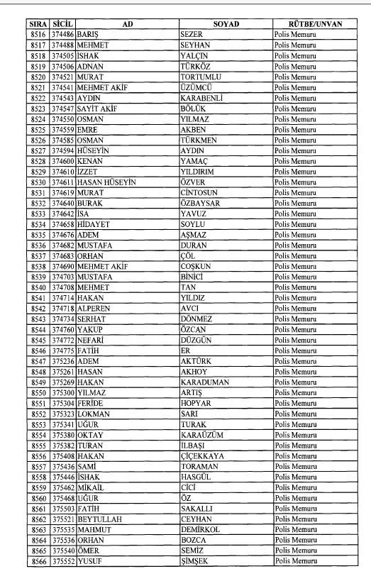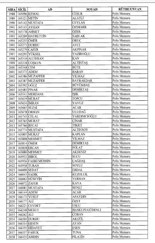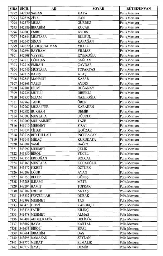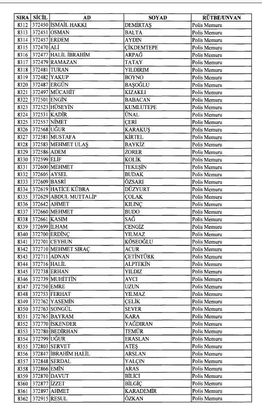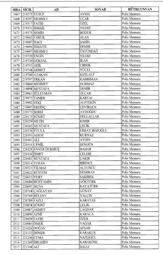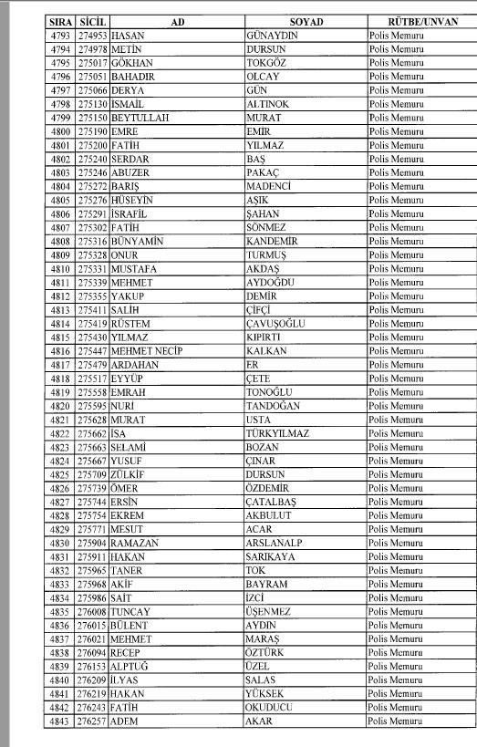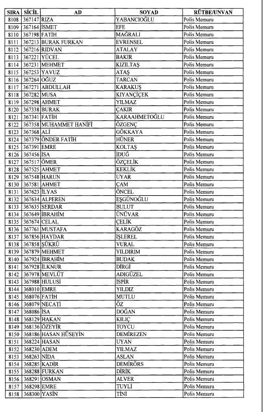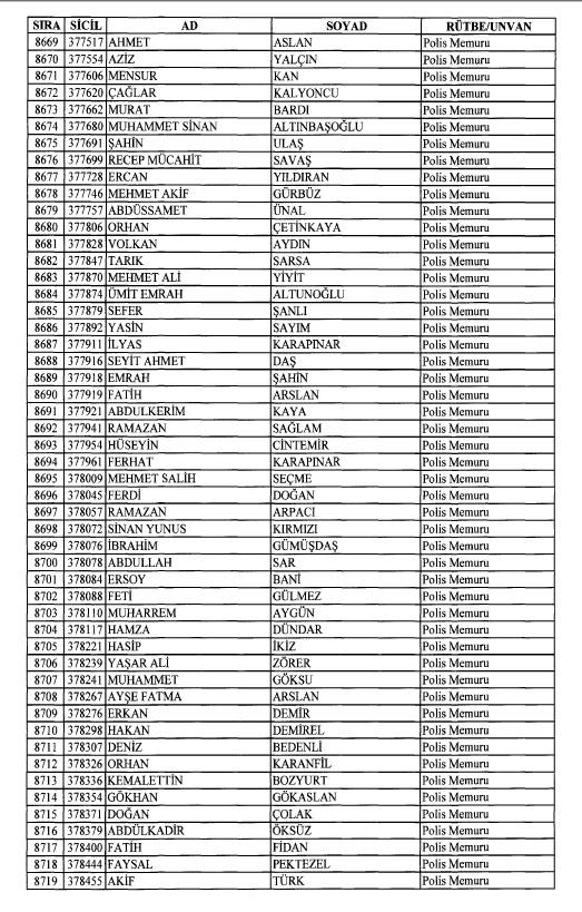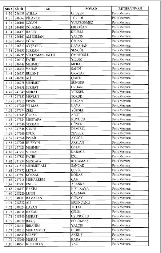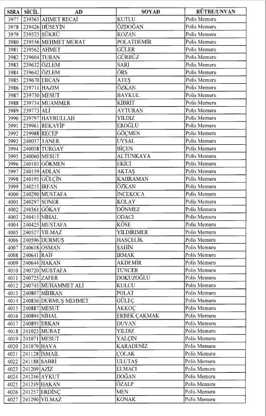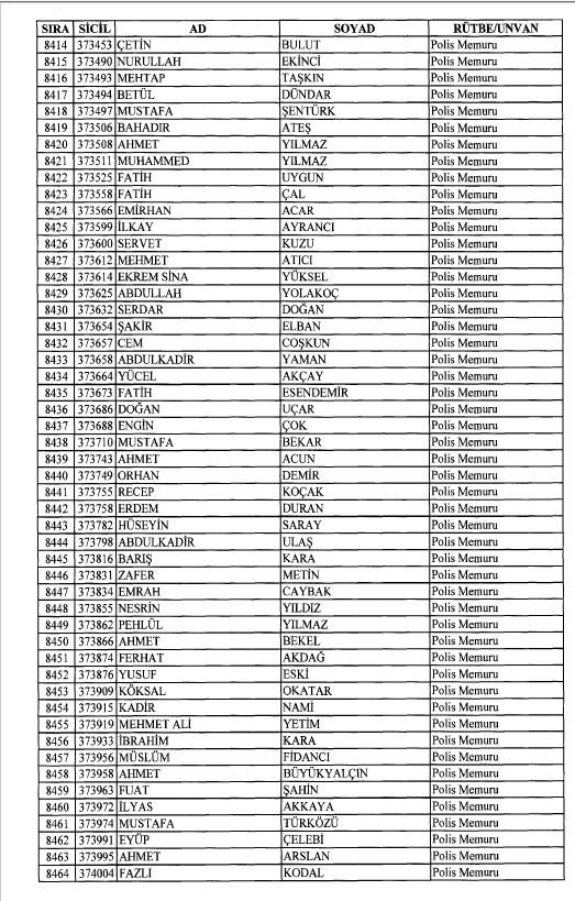 Emniyet'ten ihraç edilen 8 bin 998 personele ait liste
