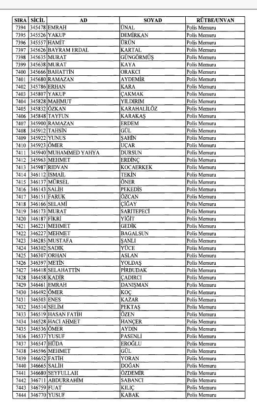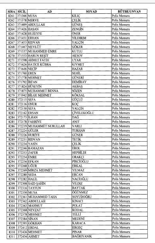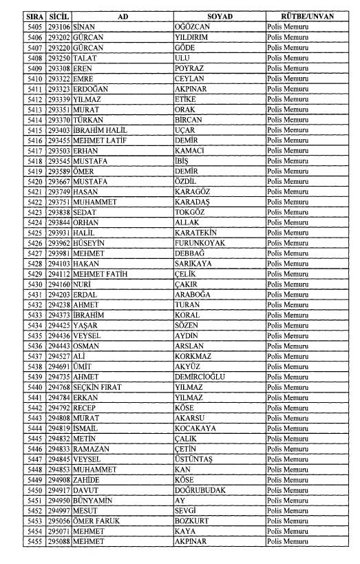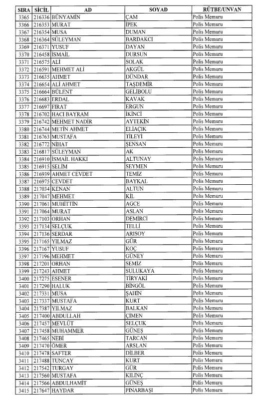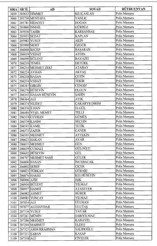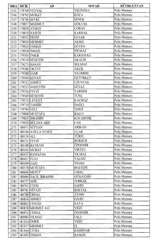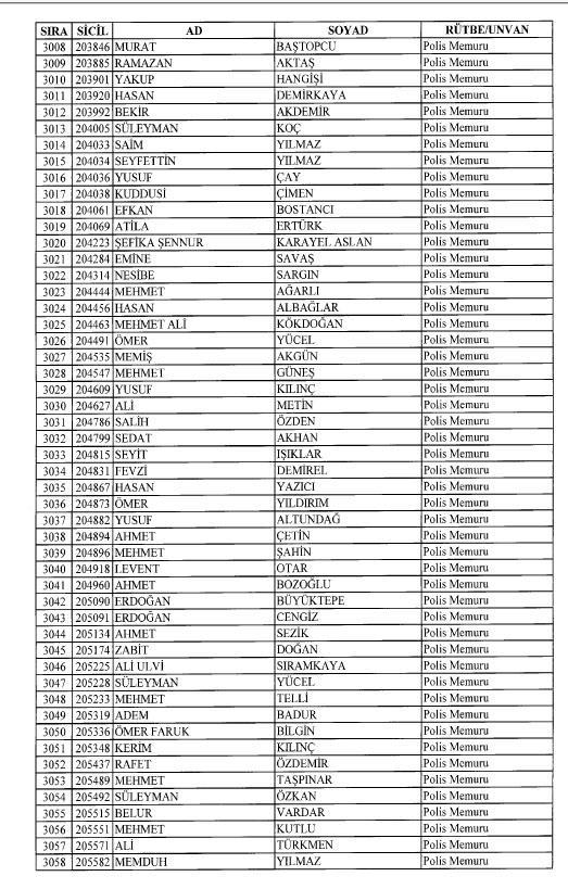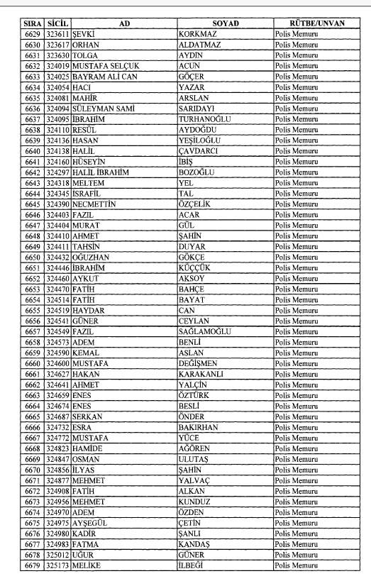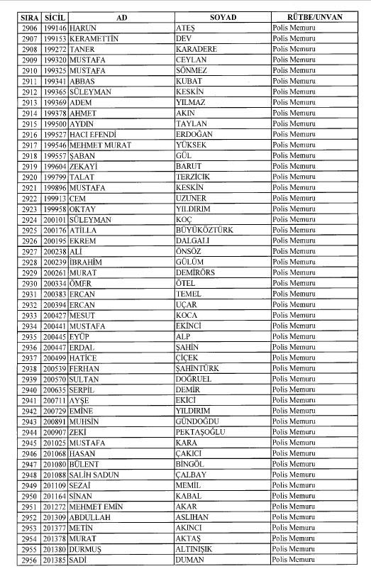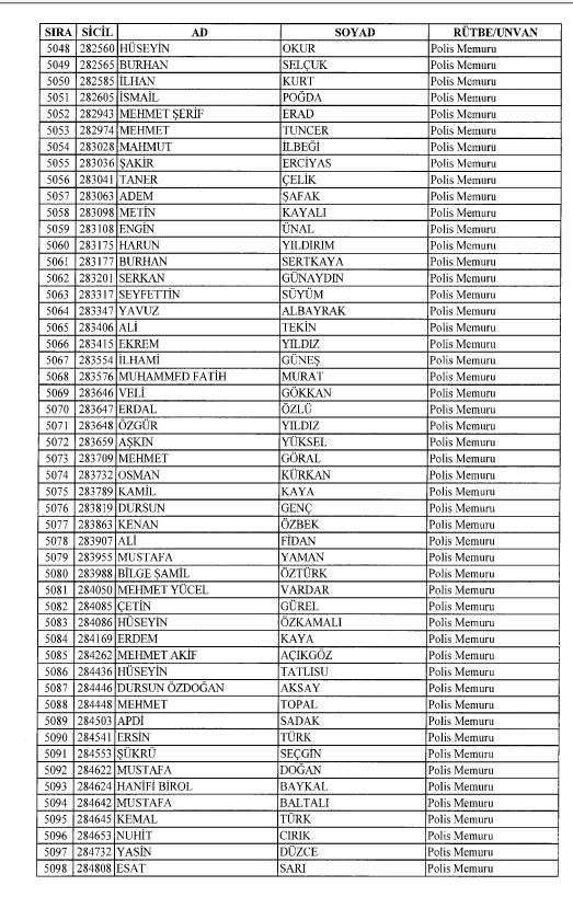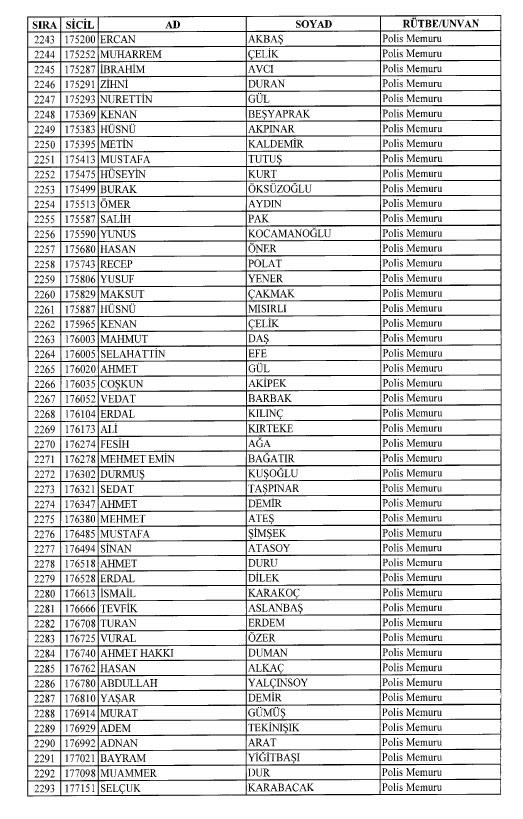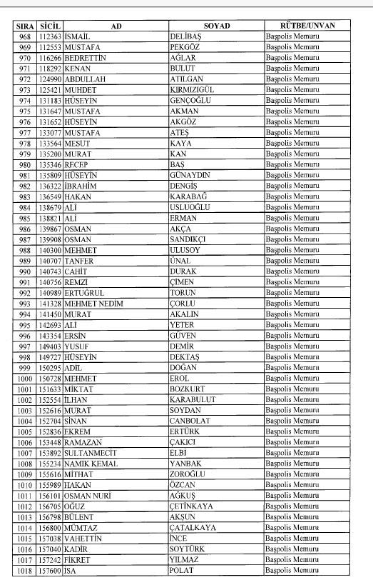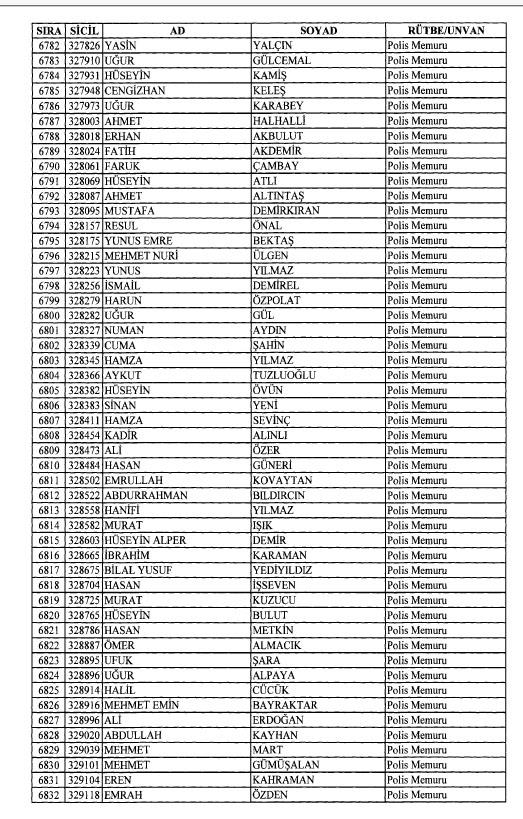 Emniyet'ten ihraç edilen 8 bin 998 personele ait liste