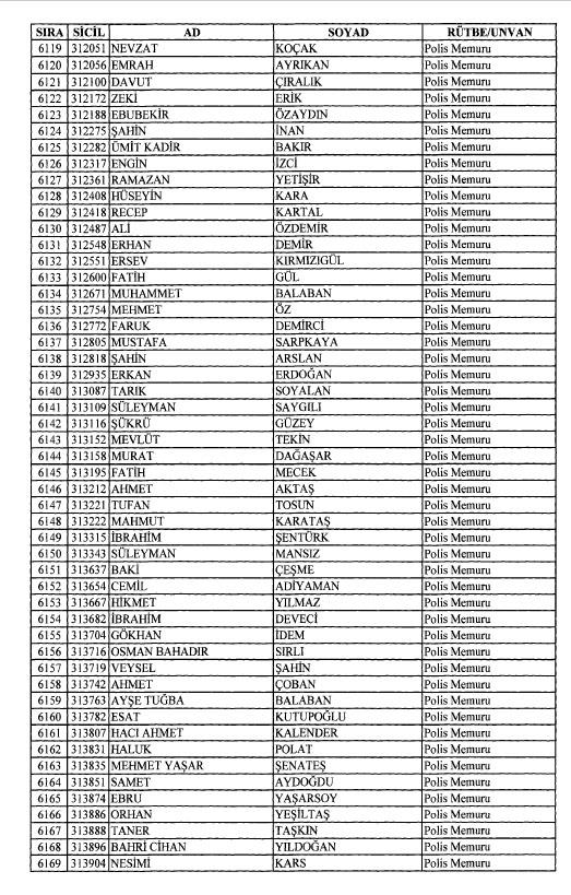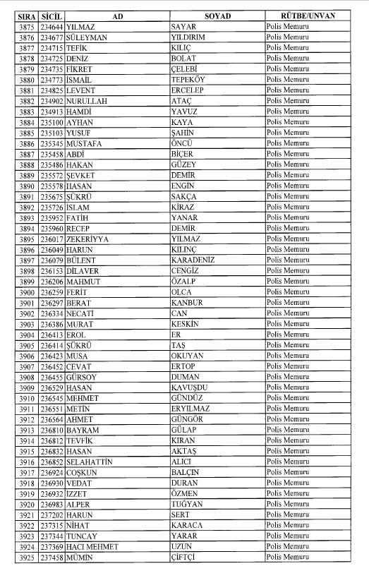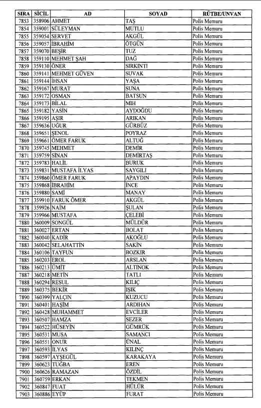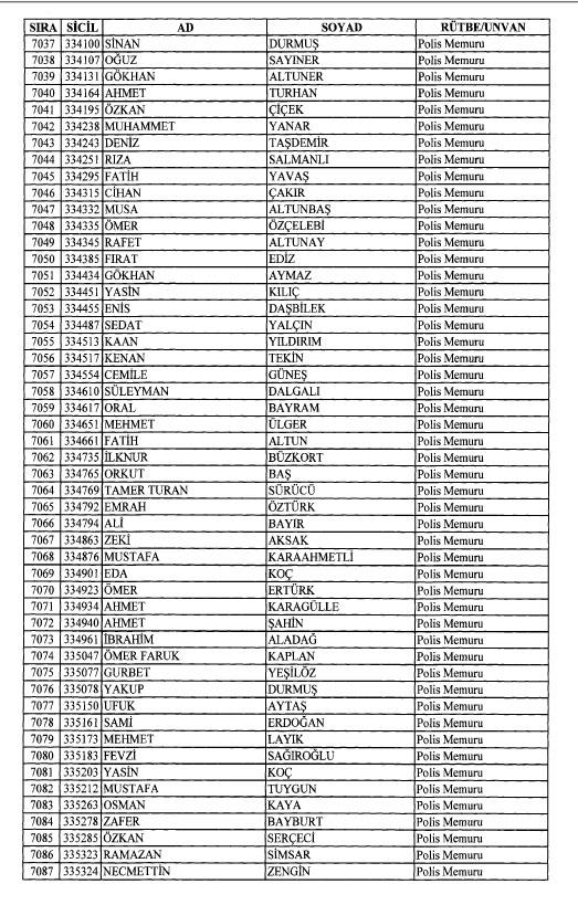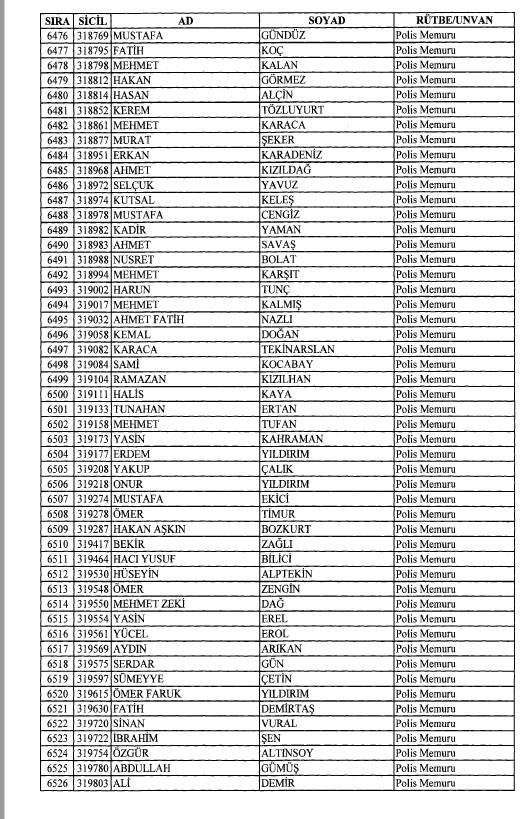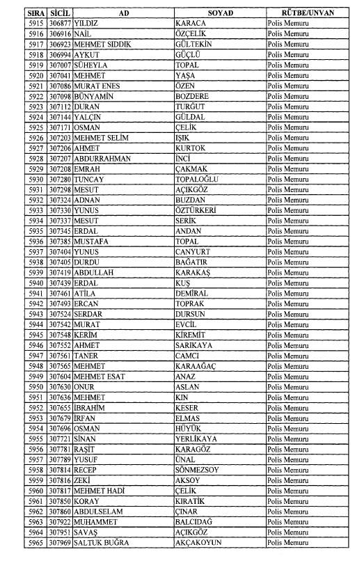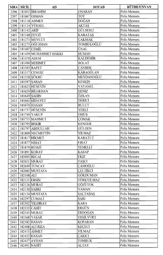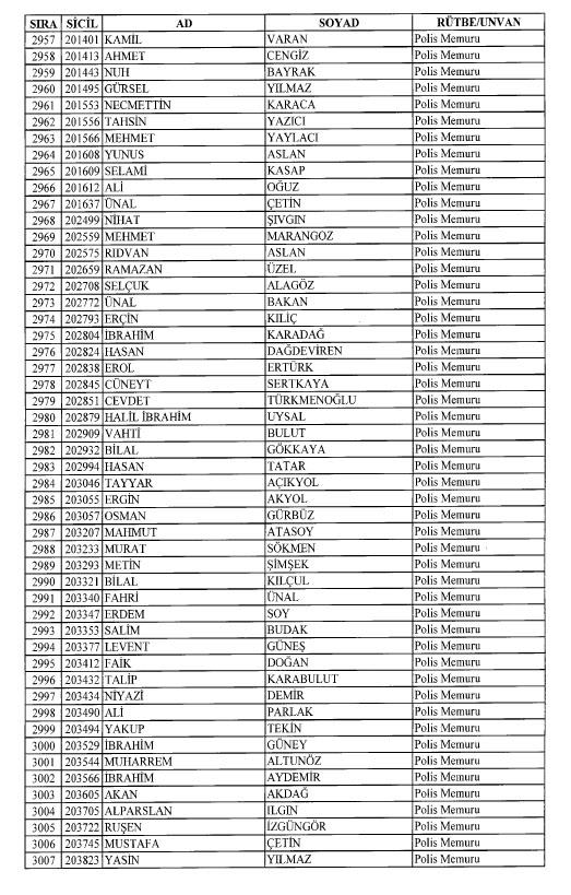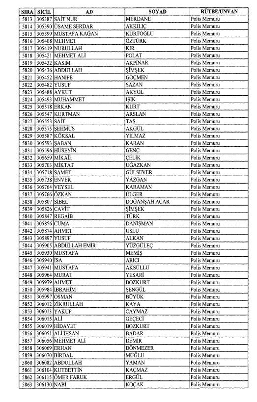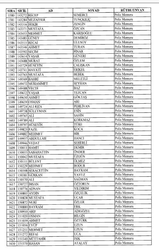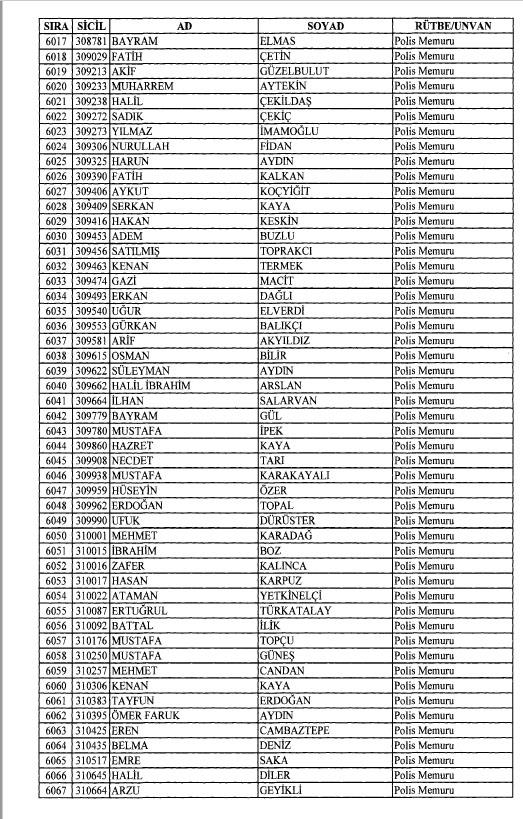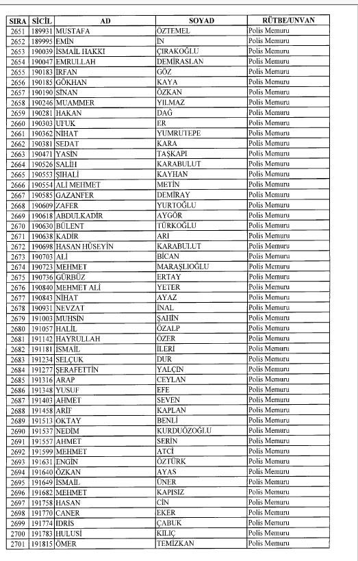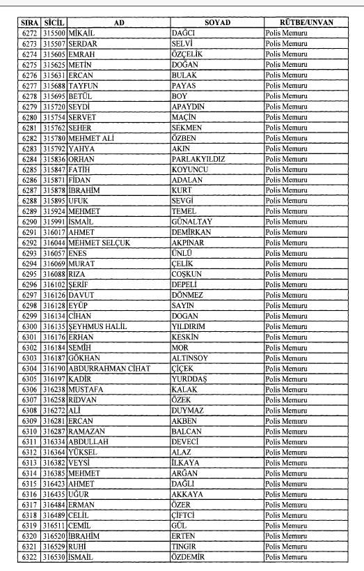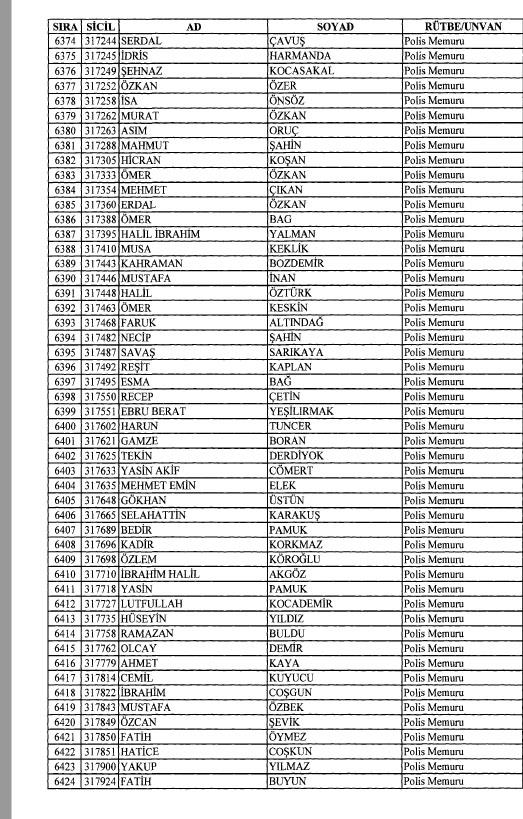 Emniyet'ten ihraç edilen 8 bin 998 personele ait liste