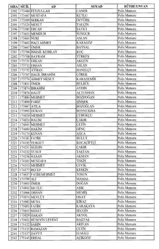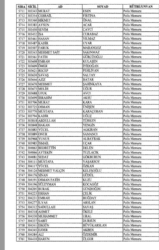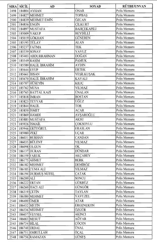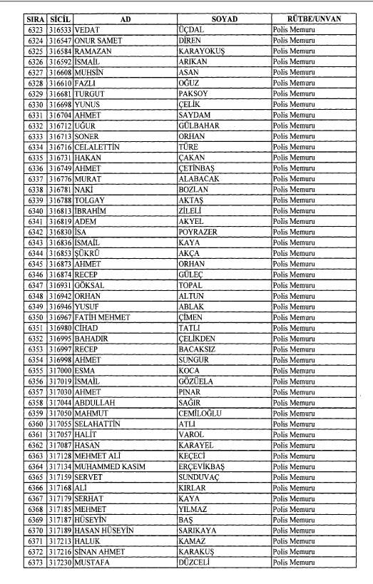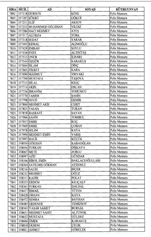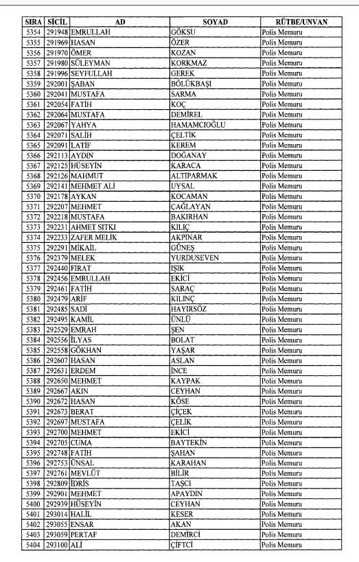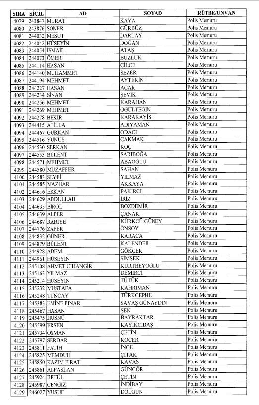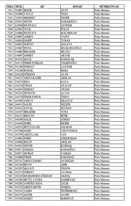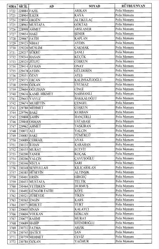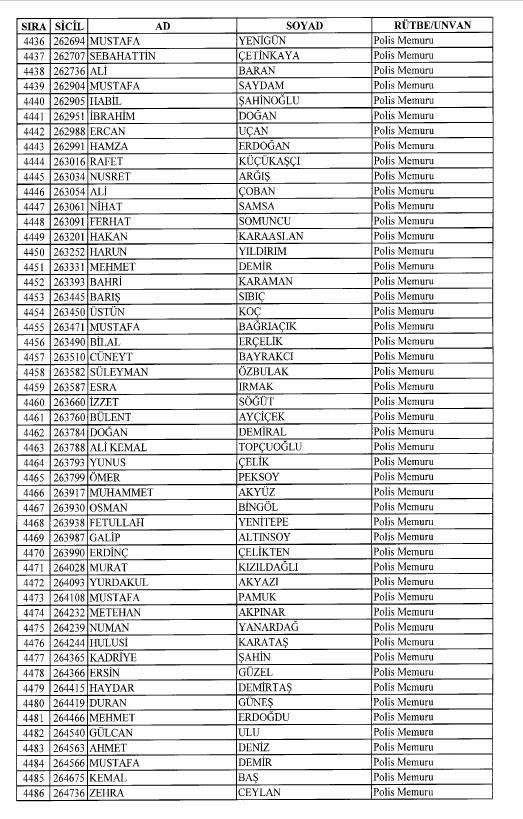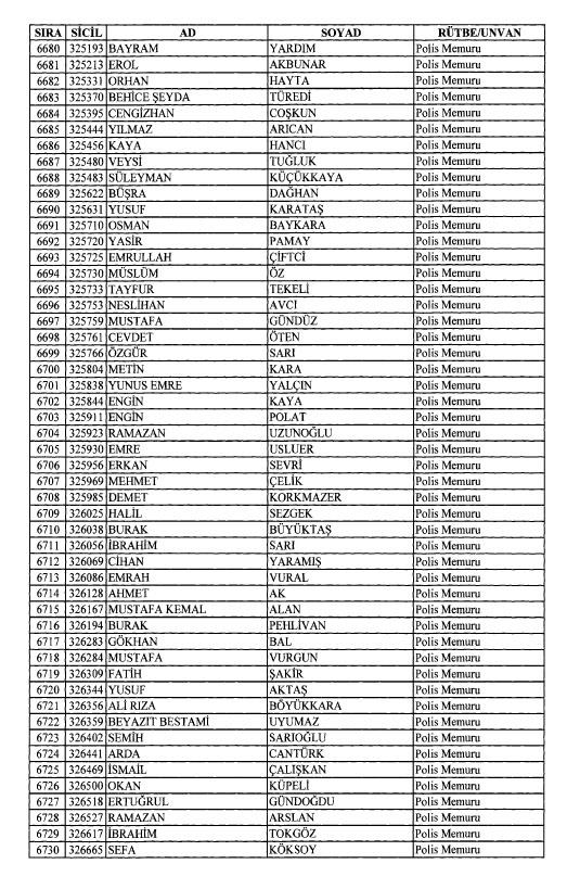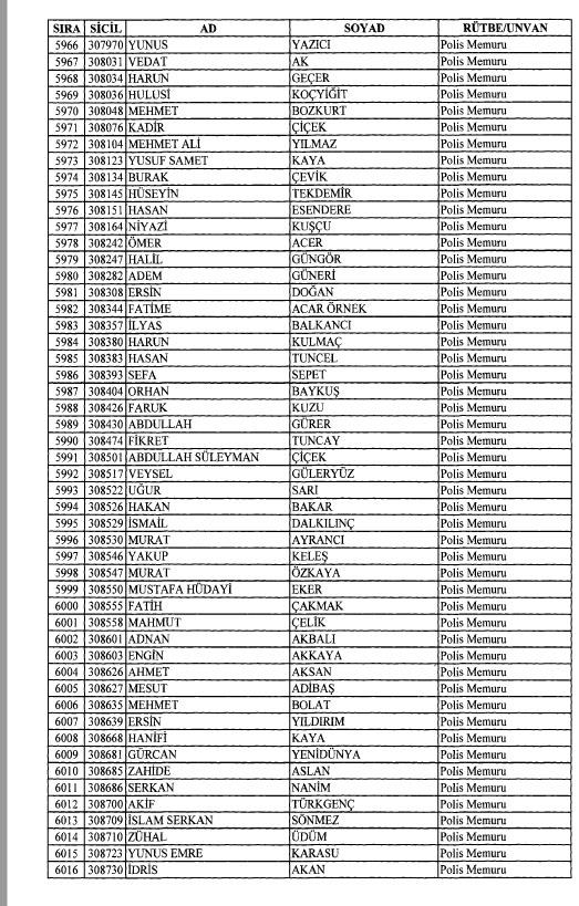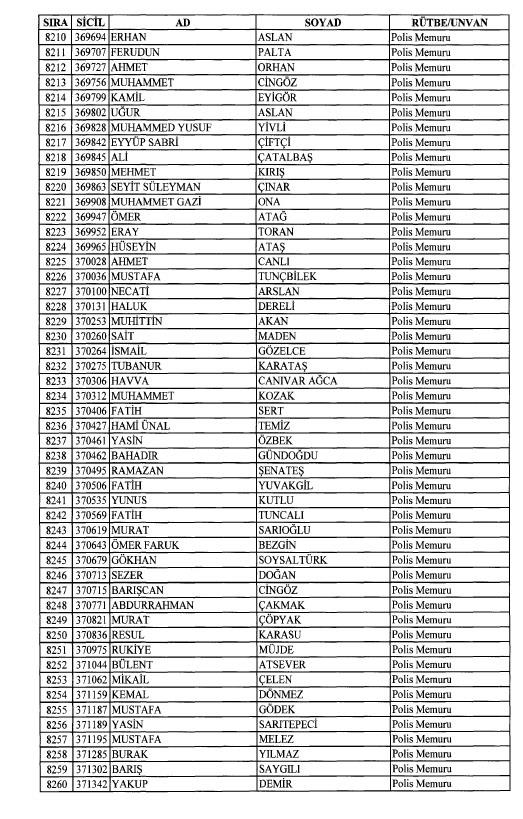Emniyet'ten ihraç edilen 8 bin 998 personele ait liste
