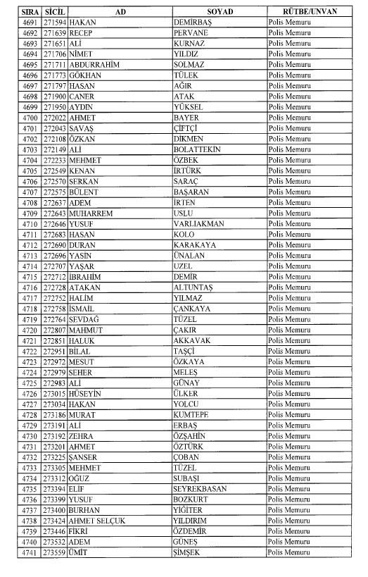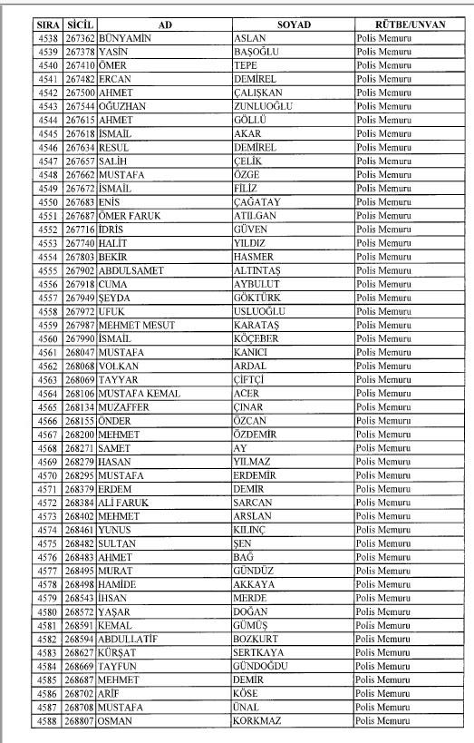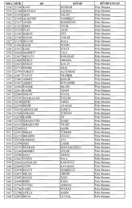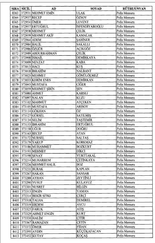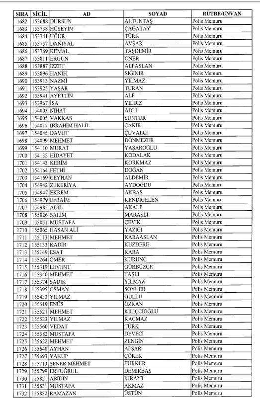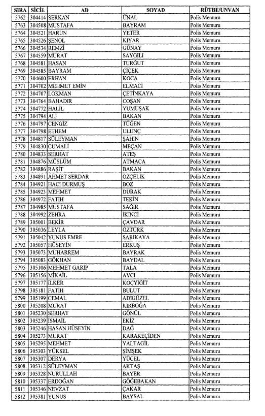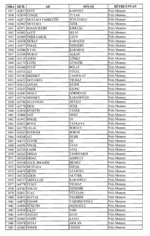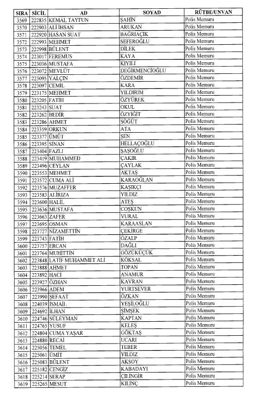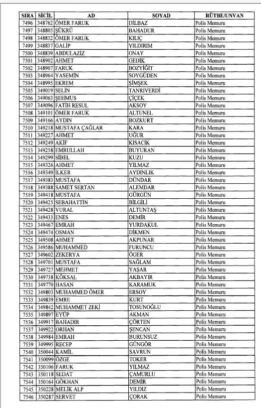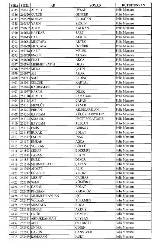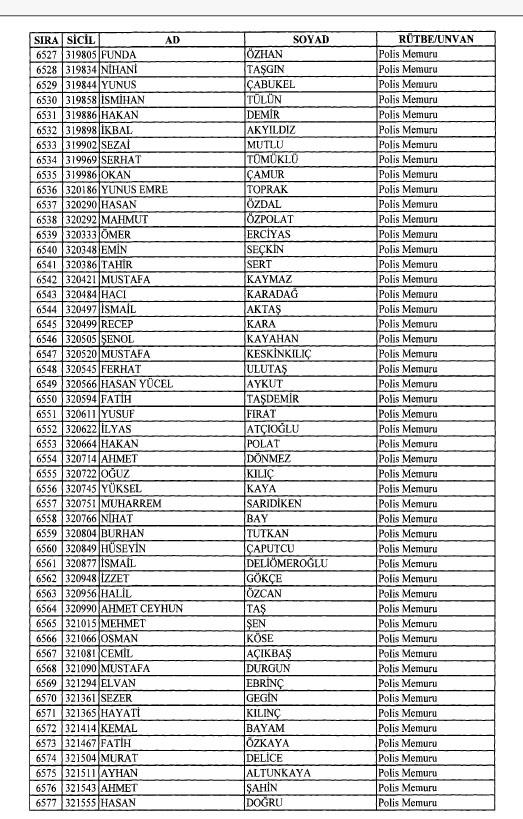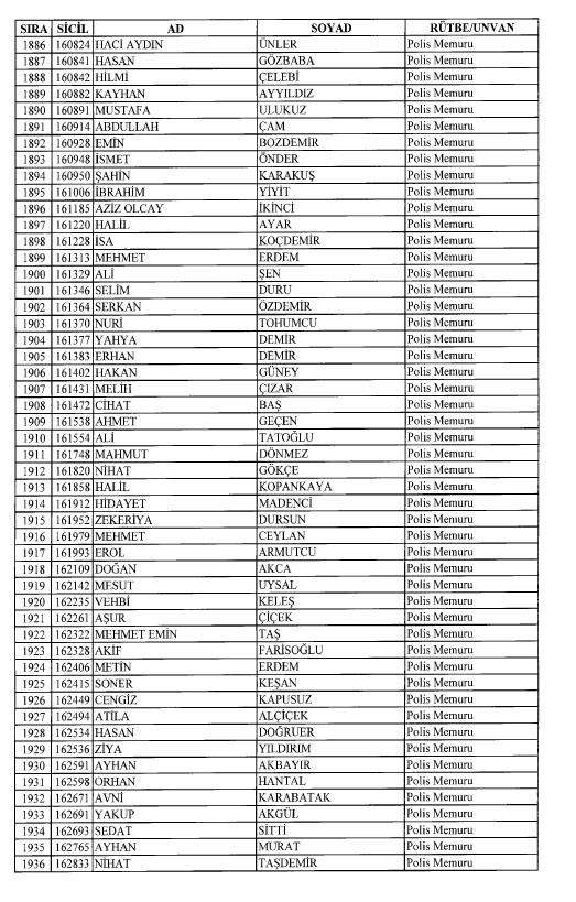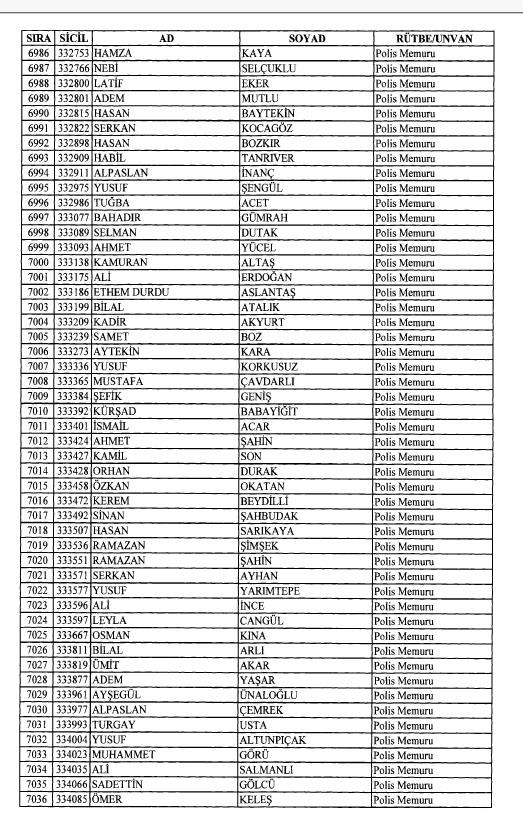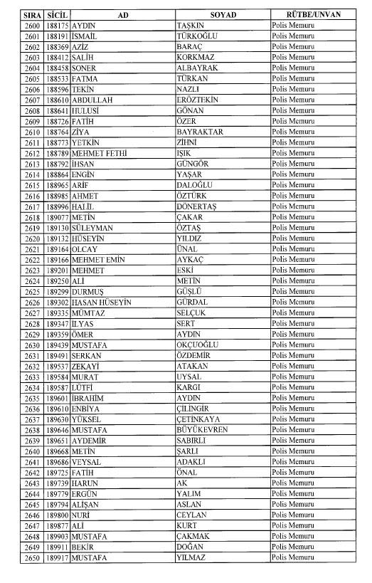 Emniyet'ten ihraç edilen 8 bin 998 personele ait liste