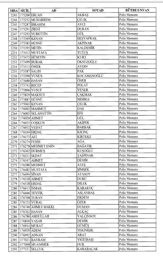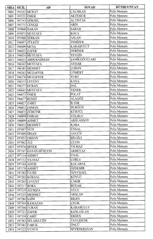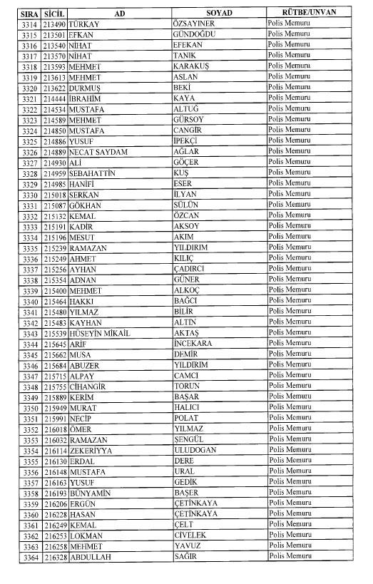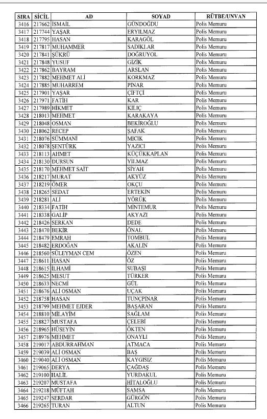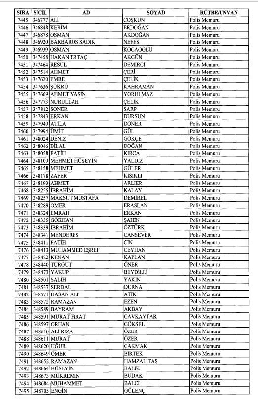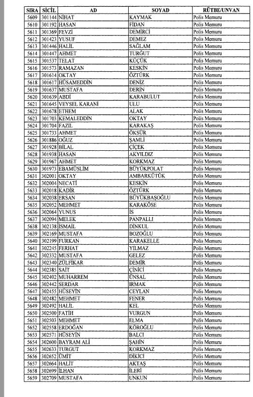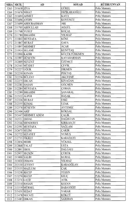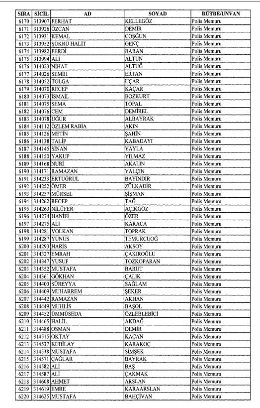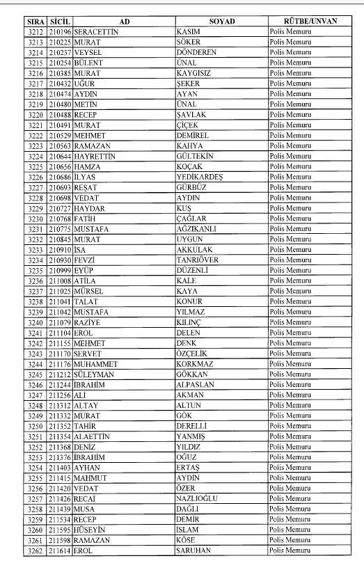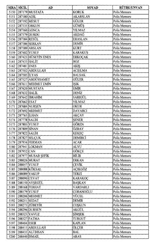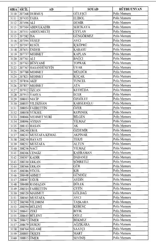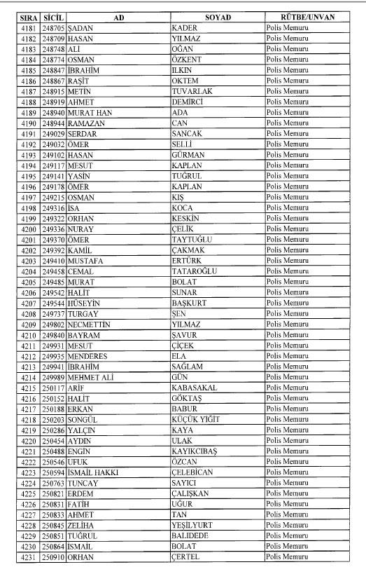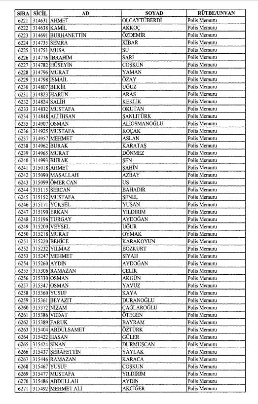 Emniyet'ten ihraç edilen 8 bin 998 personele ait liste