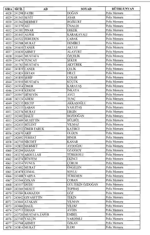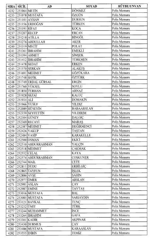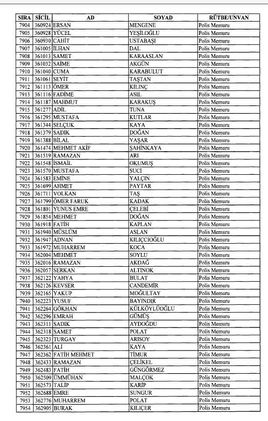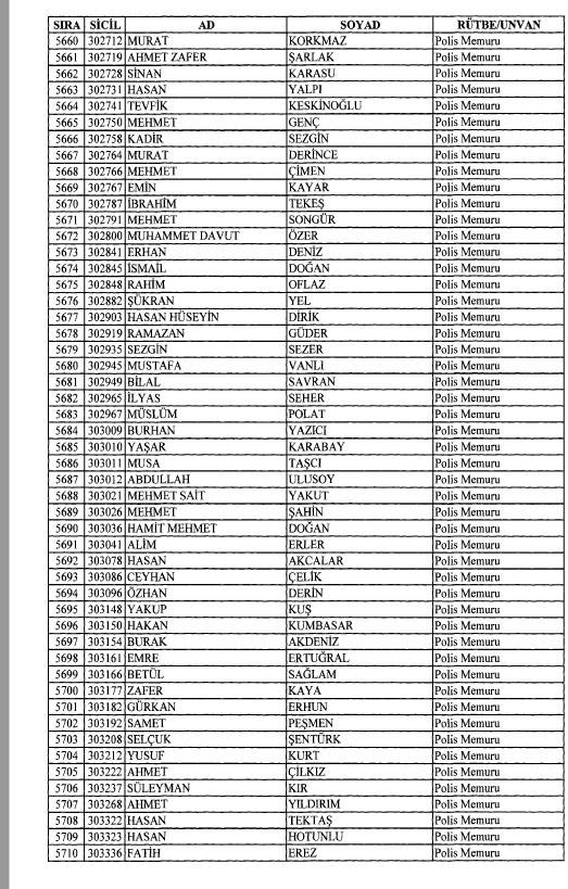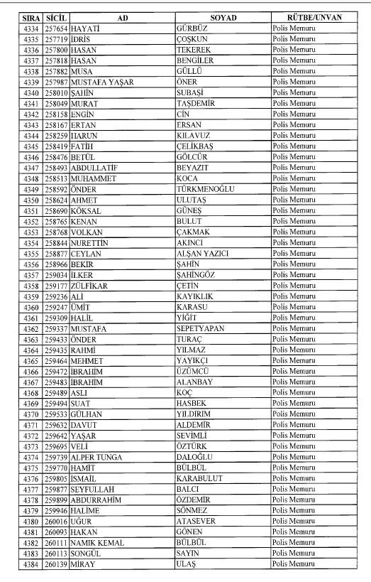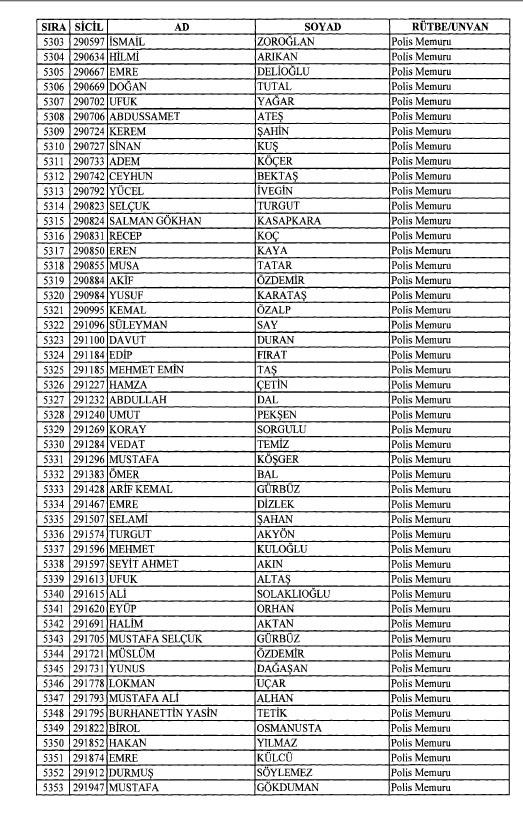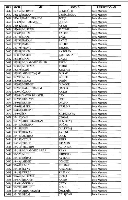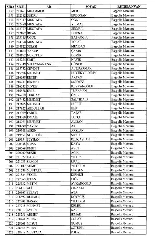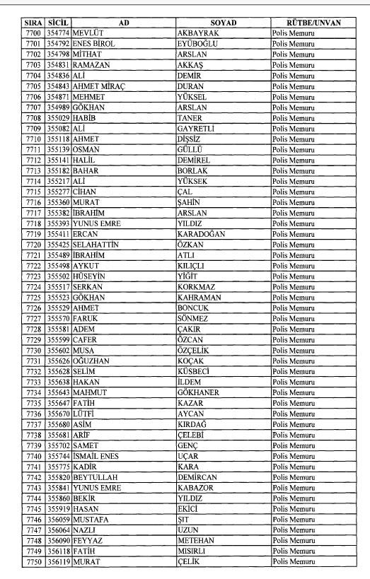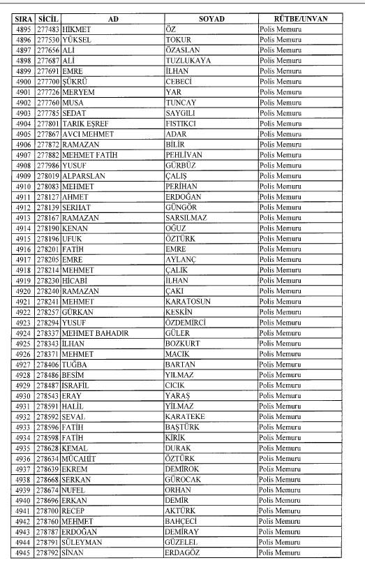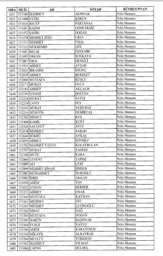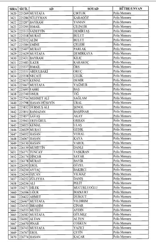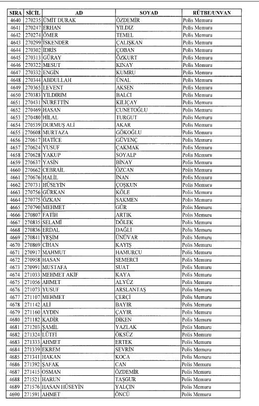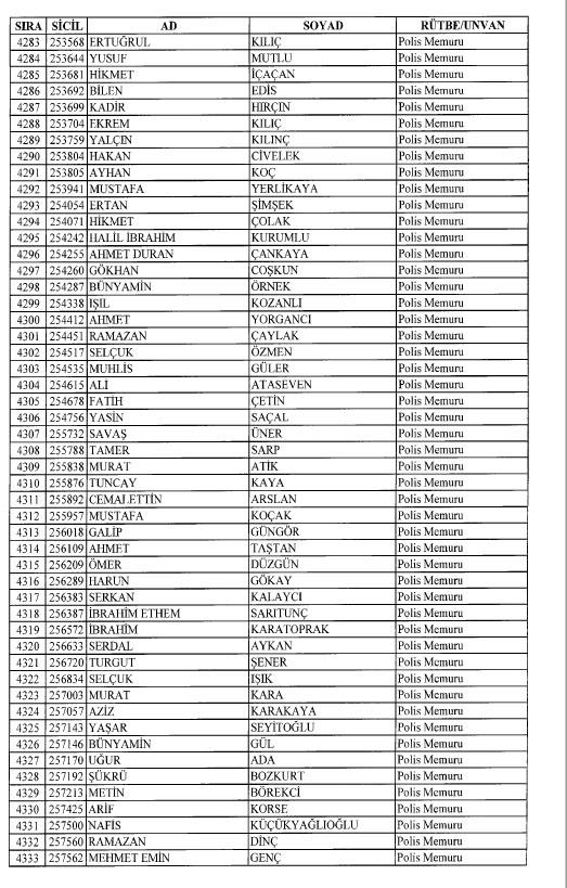 Emniyet'ten ihraç edilen 8 bin 998 personele ait liste