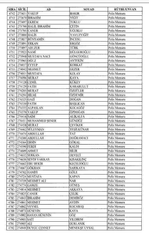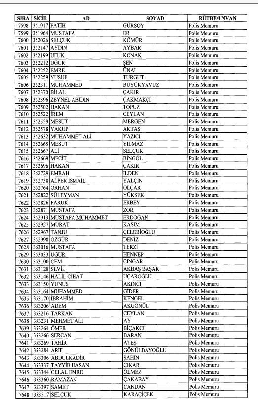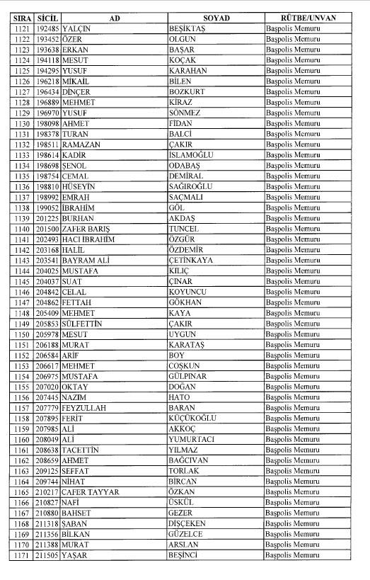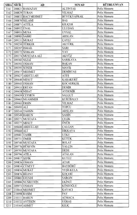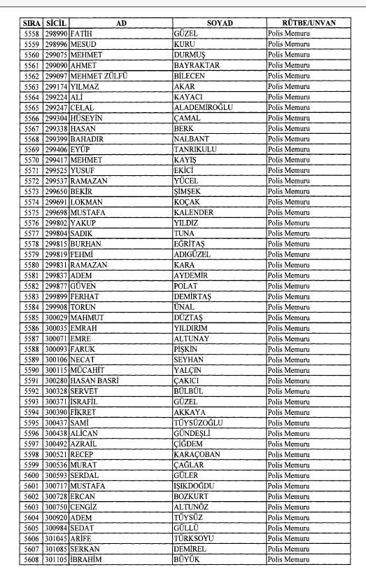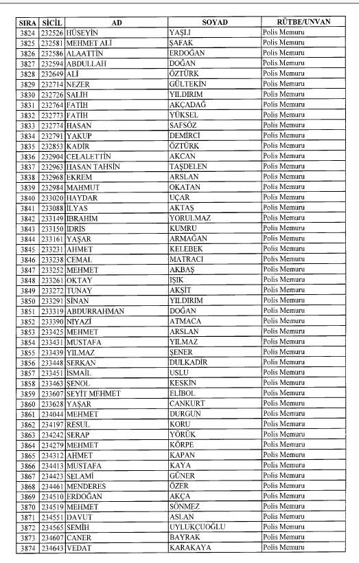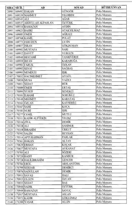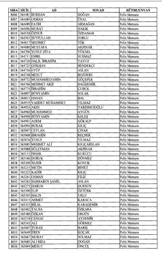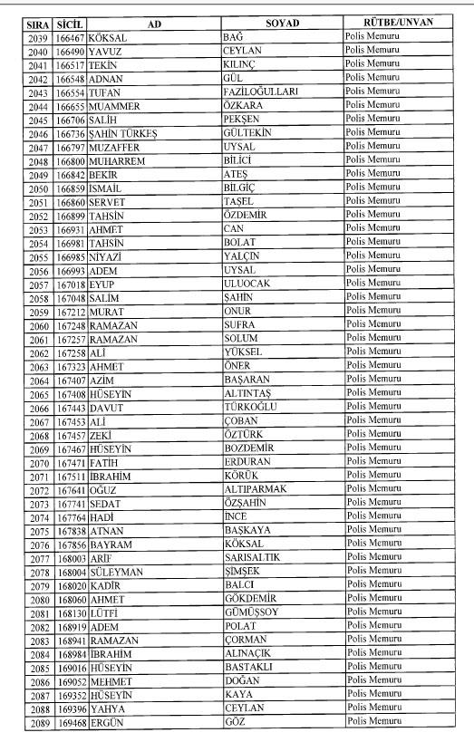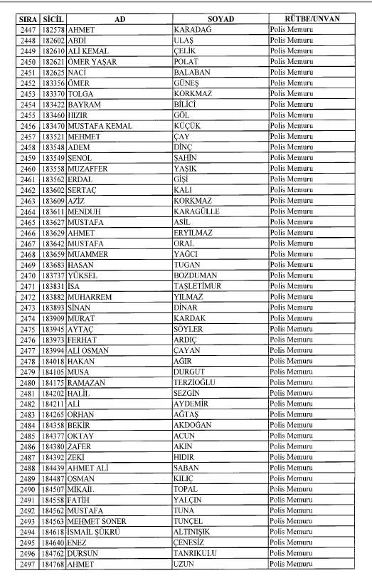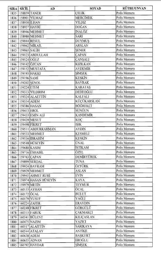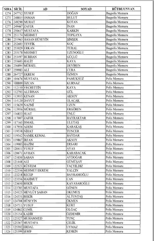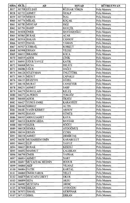 Emniyet'ten ihraç edilen 8 bin 998 personele ait liste
