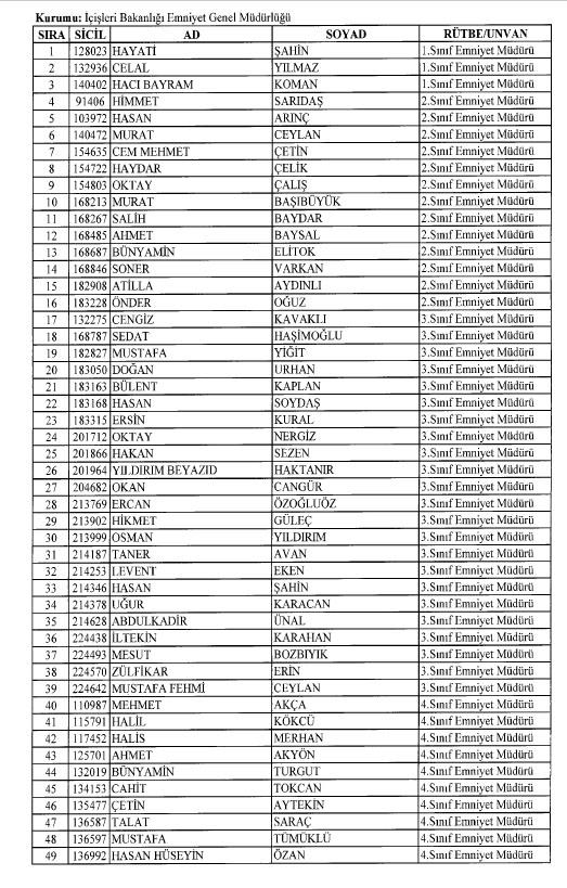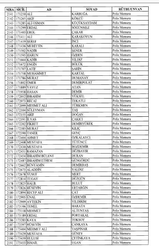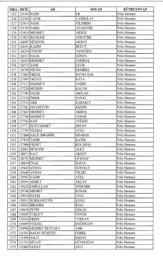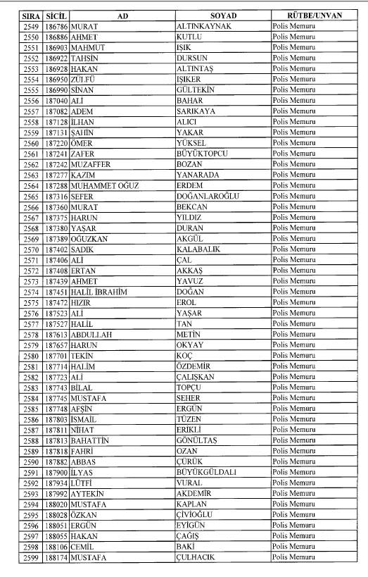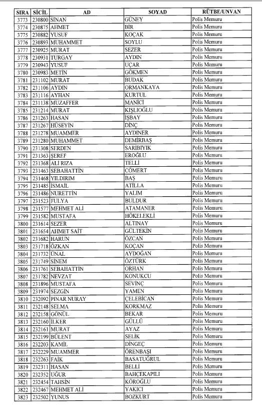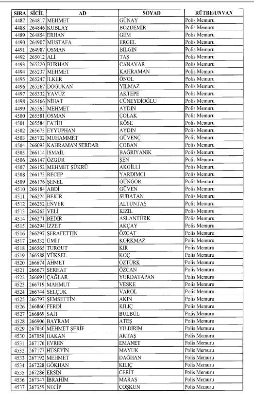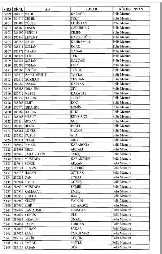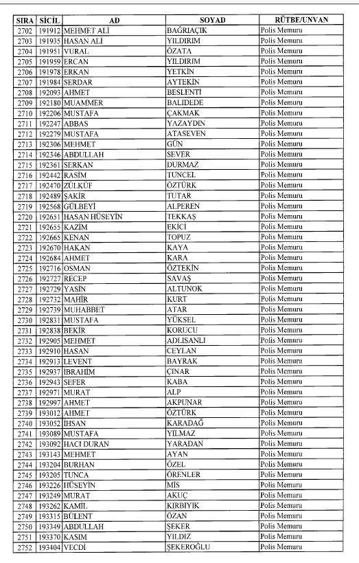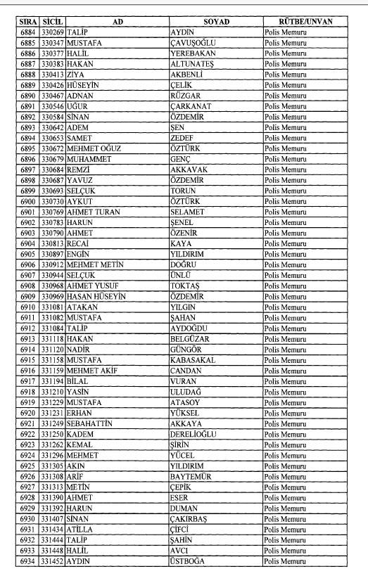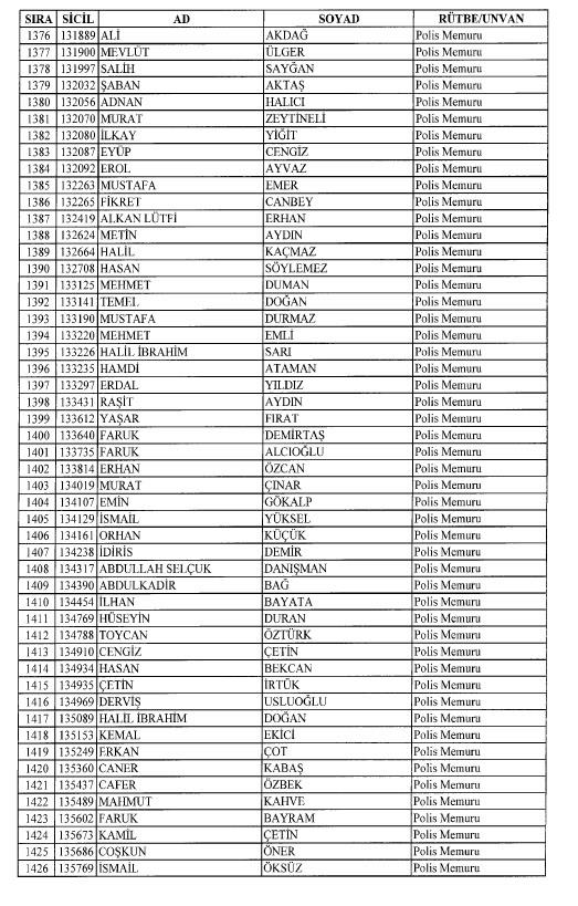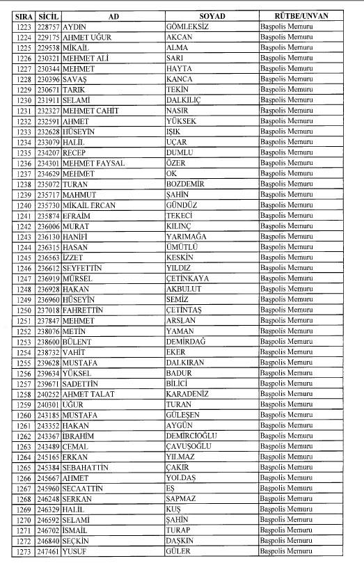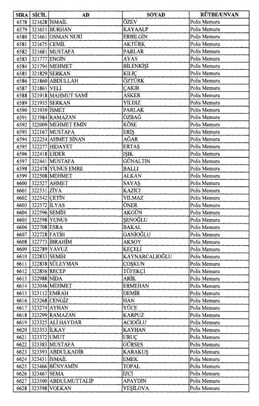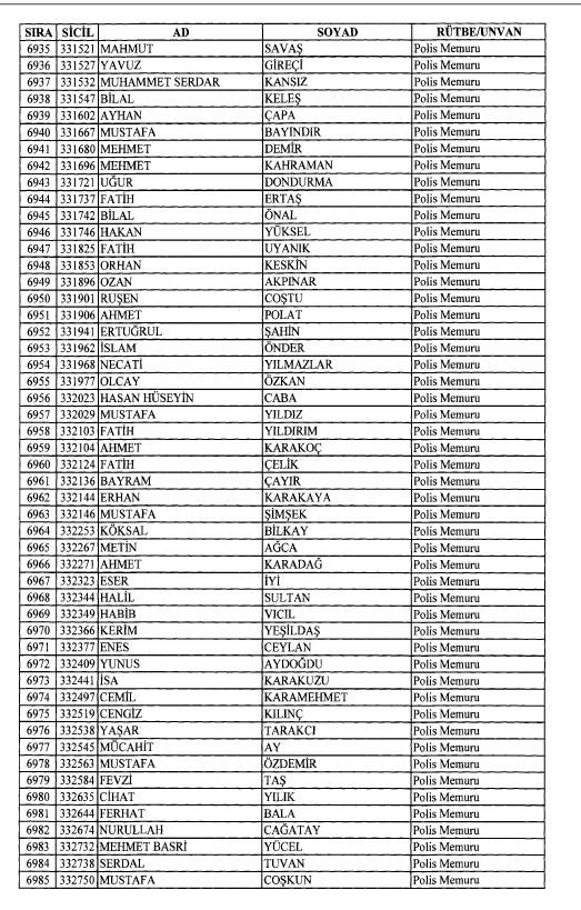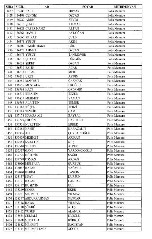 Emniyet'ten ihraç edilen 8 bin 998 personele ait liste