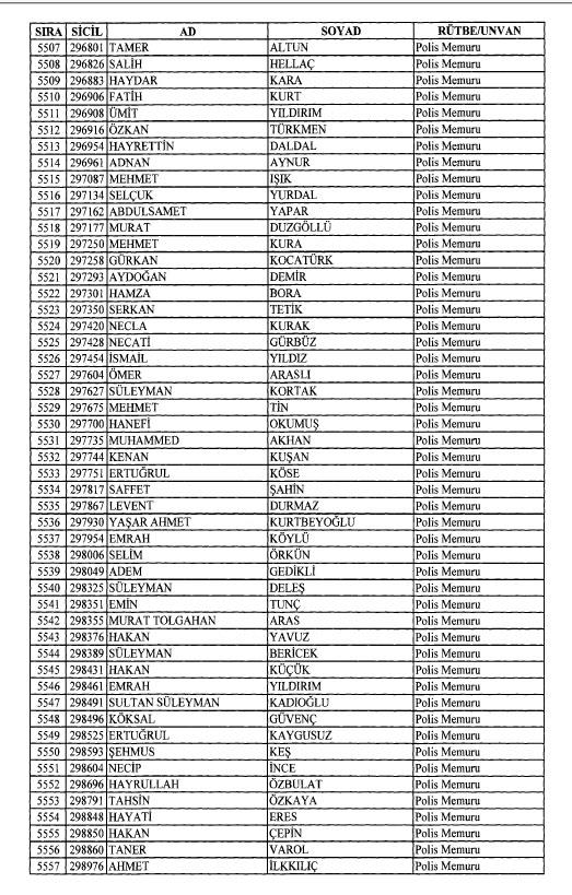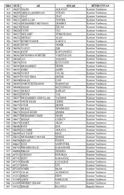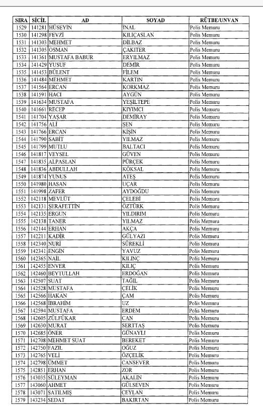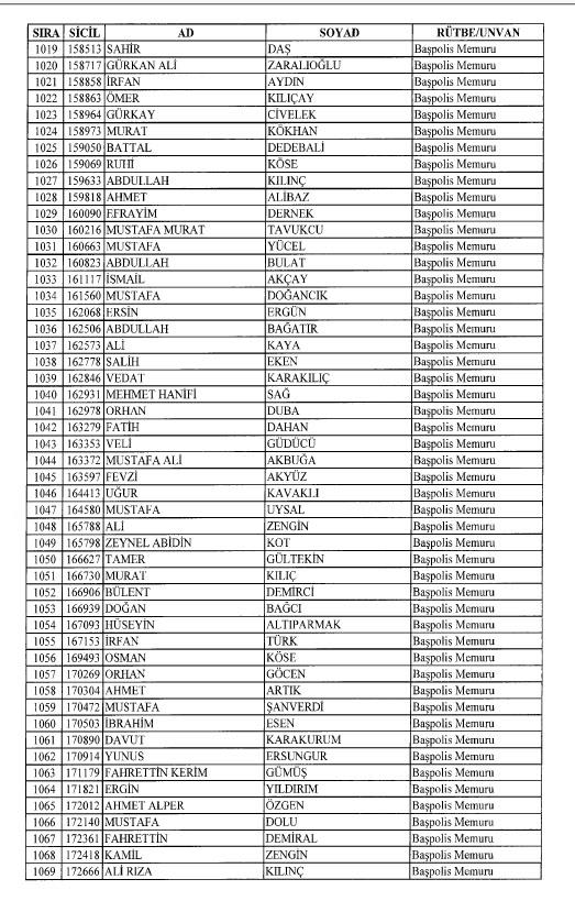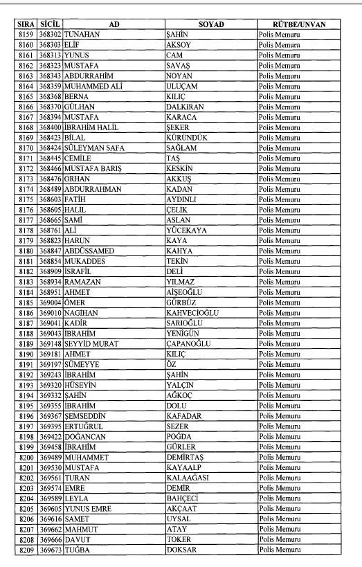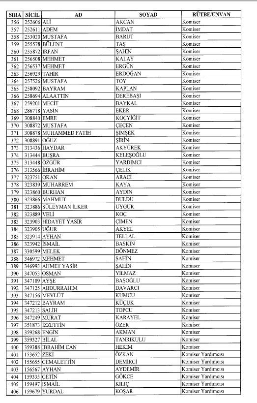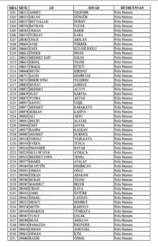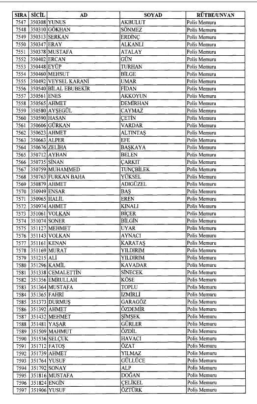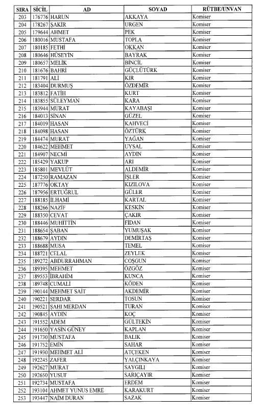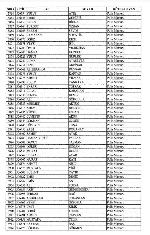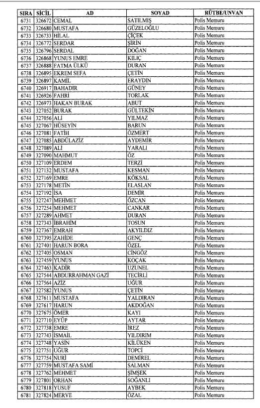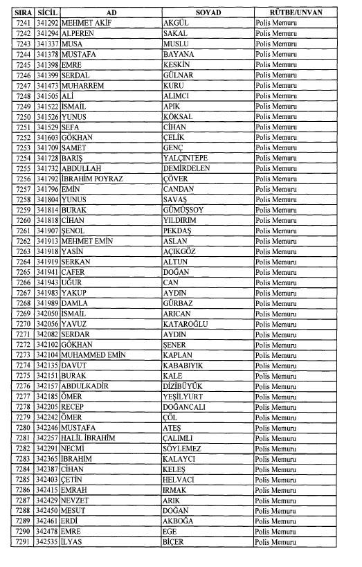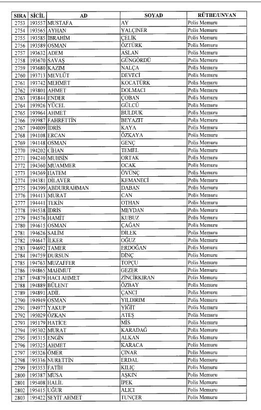 Emniyet'ten ihraç edilen 8 bin 998 personele ait liste