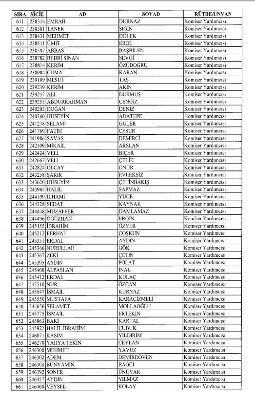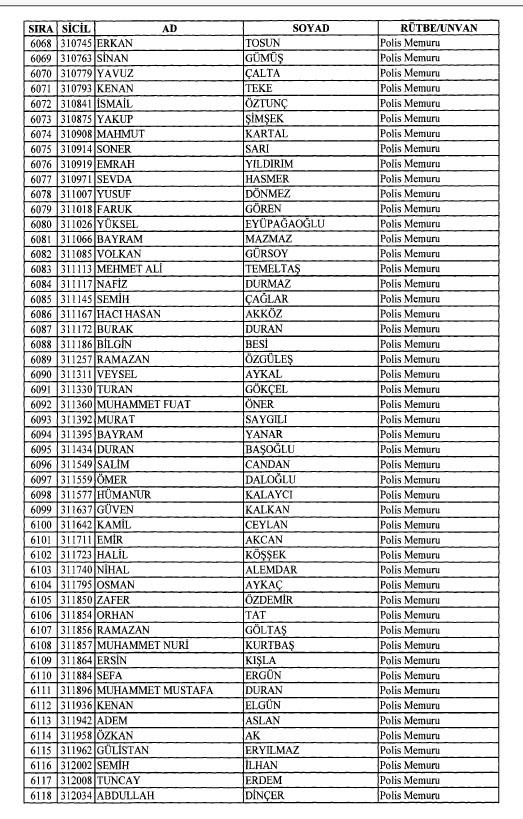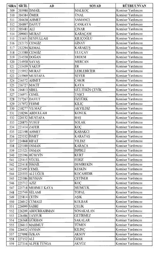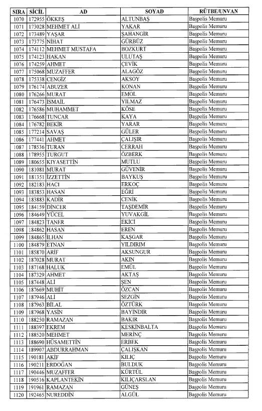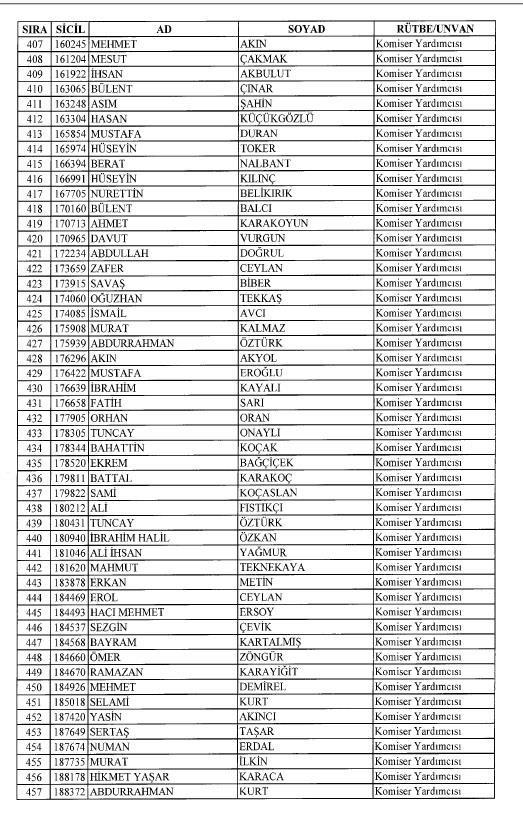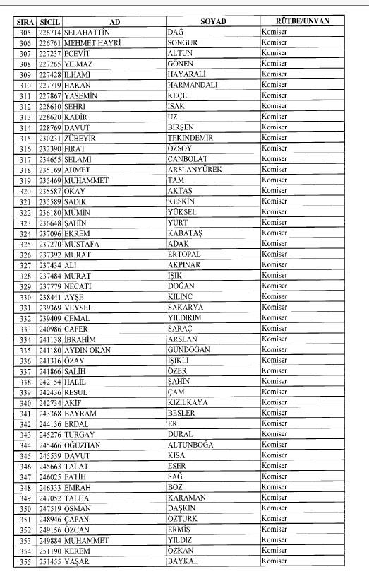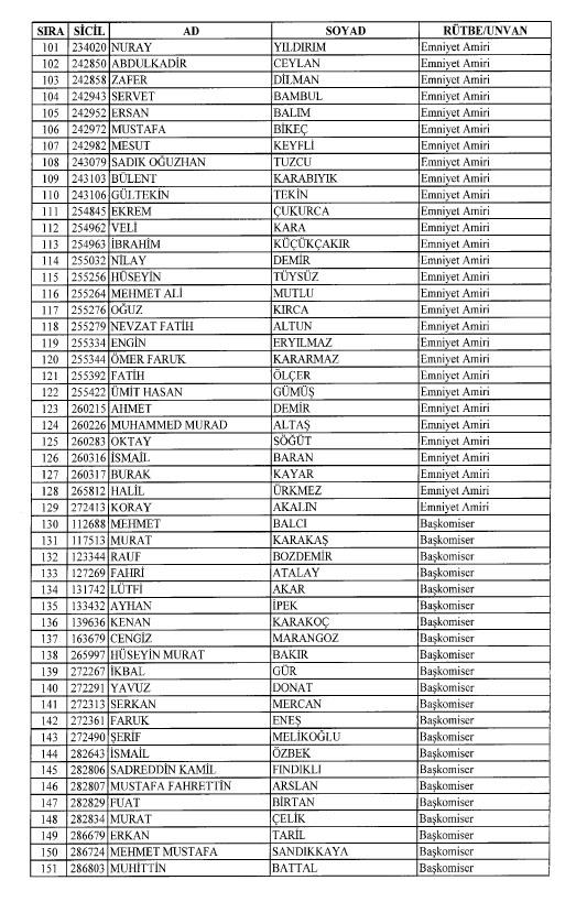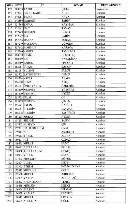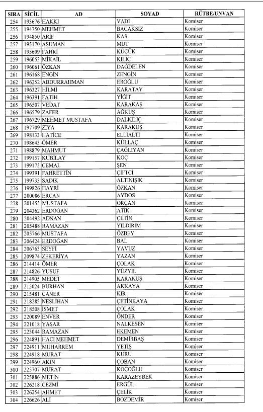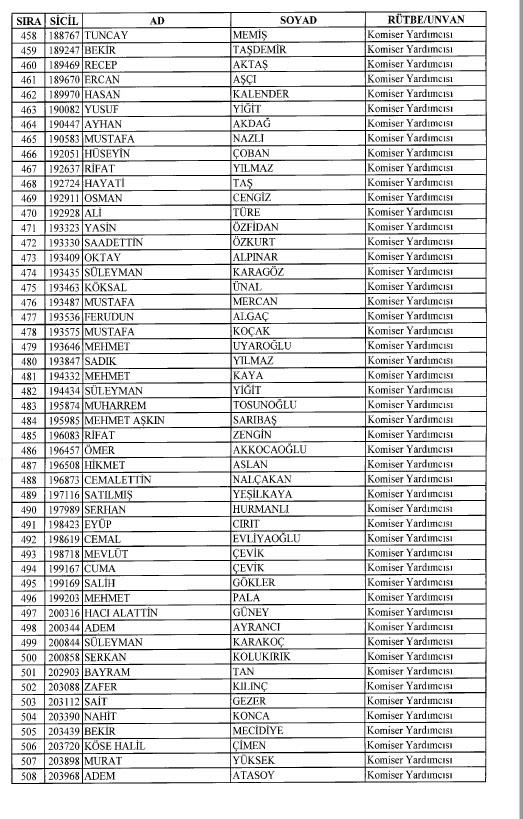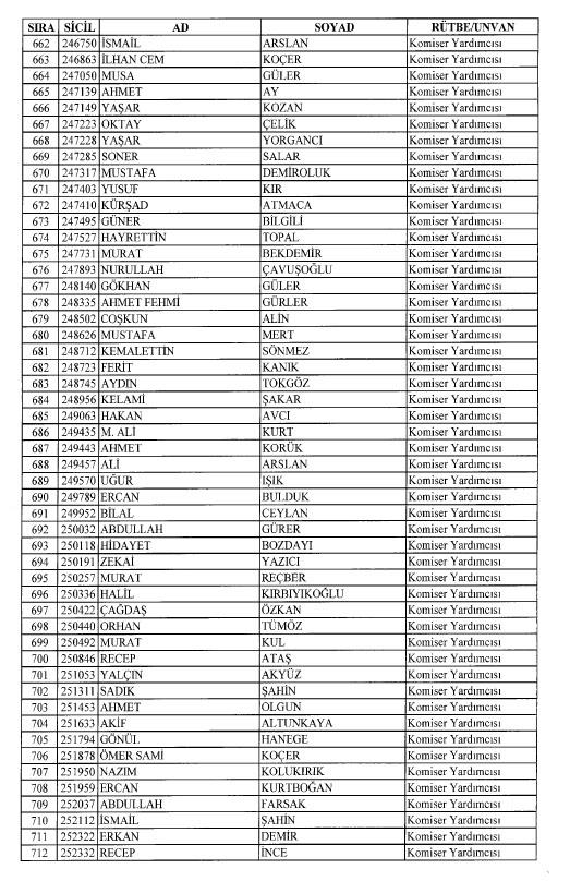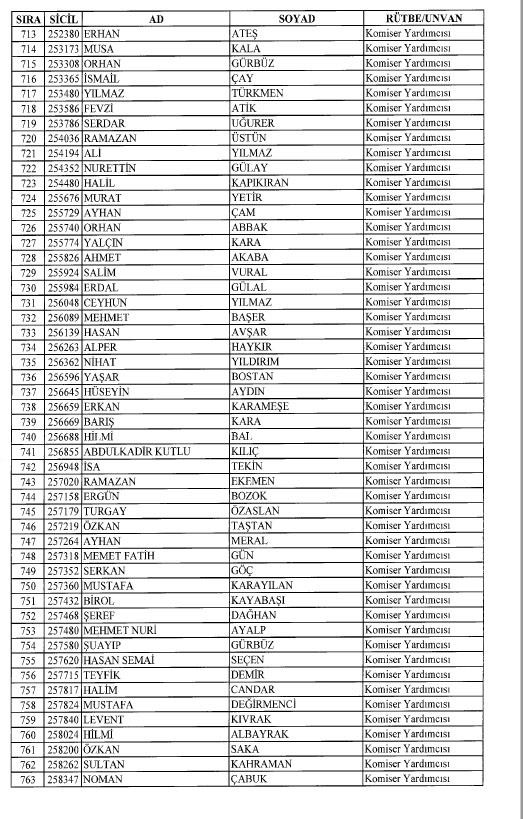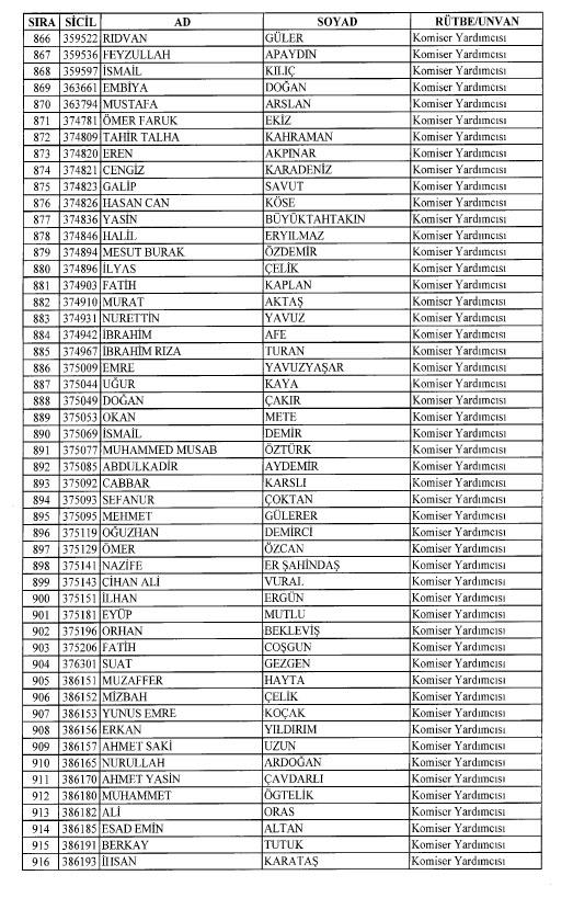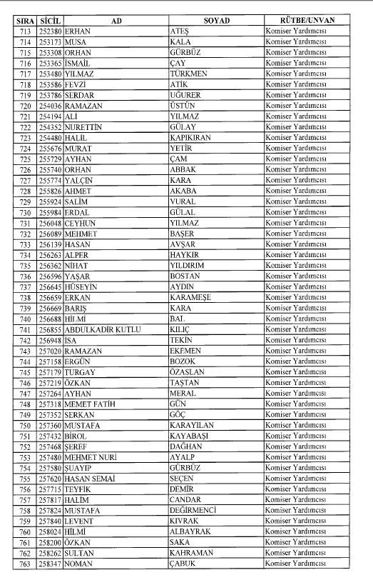 Emniyet'ten ihraç edilen 8 bin 998 personele ait liste