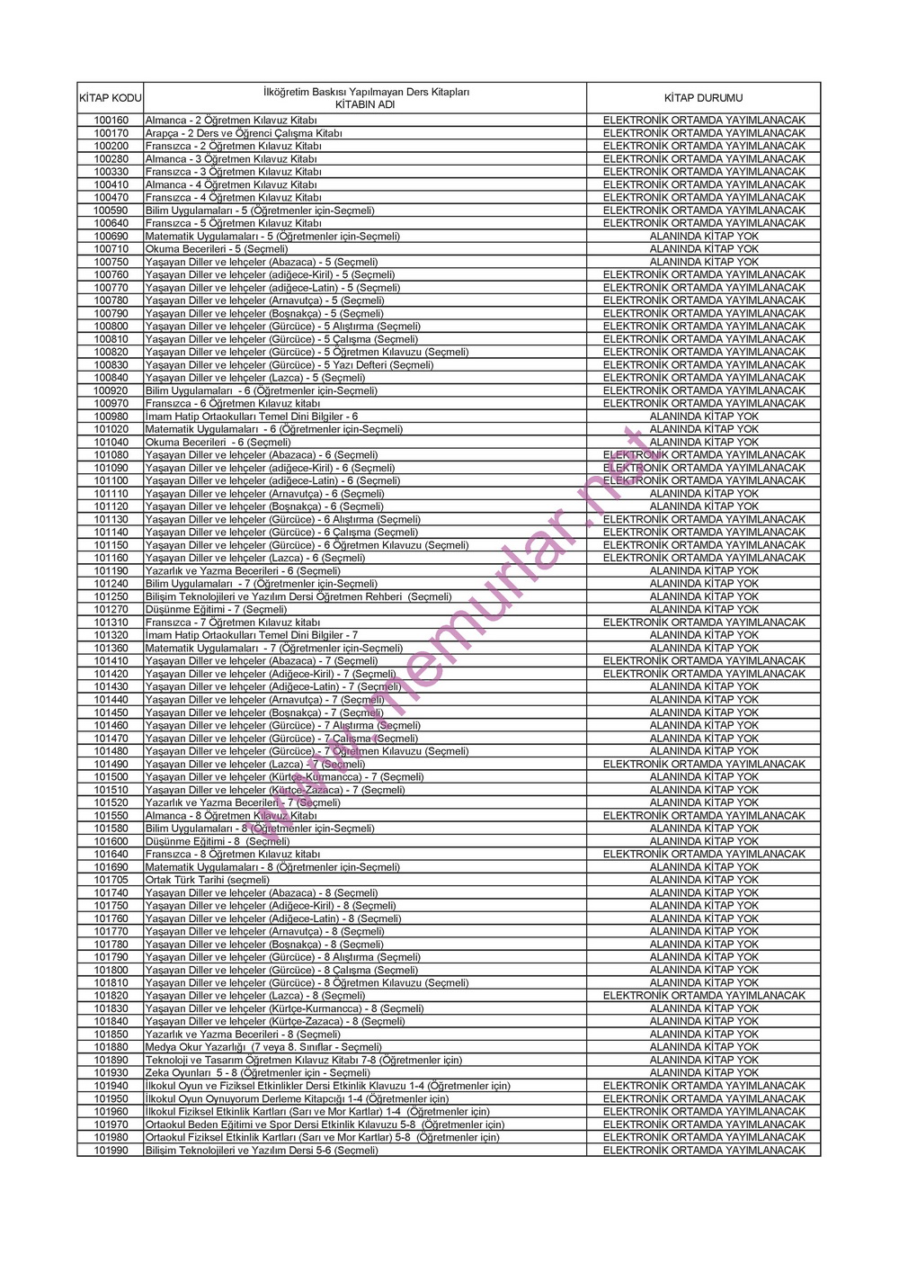 İşte baskısı yapılacak ve yapılmayacak olan ders kitapları