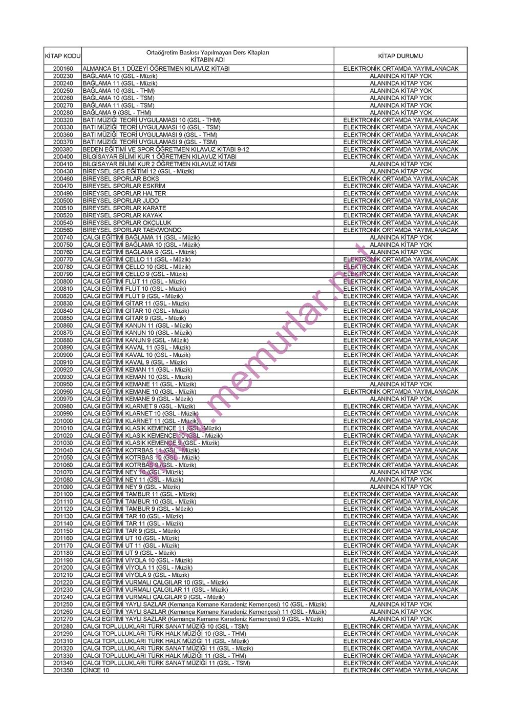 İşte Ortaöğretimde Baskısı Yapılmayan Ders Kitapları