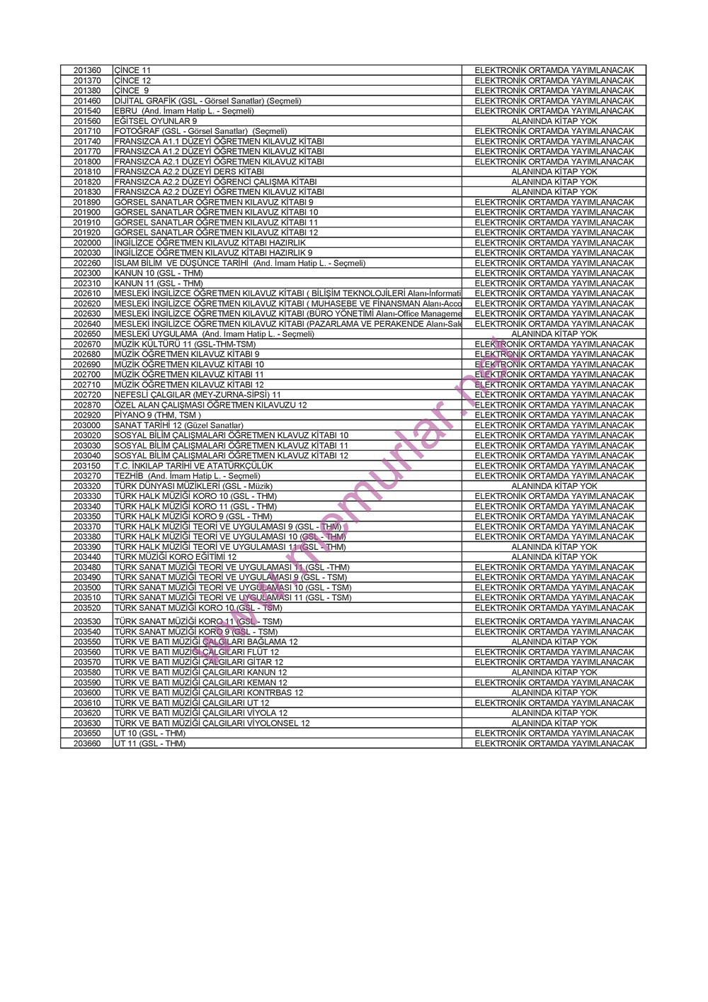 İşte Ortaöğretimde Baskısı Yapılacak Ders Kitapları