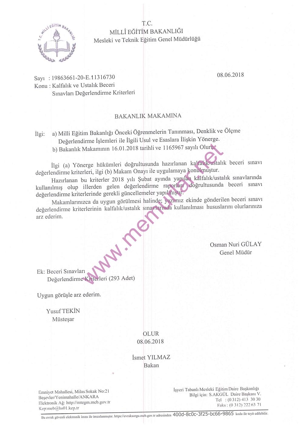 Kalfalık ve Ustalık Beceri Sınavlarına Ait Dokümanlar ve Beceri Sınavı Değerlendirme Kriterleri için tıklayınız.