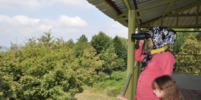 Bursa'nın İnegöl ilçesindeki Orman İşletme Müdürlüğü gözlem kulesinde çalışan Nurşen Turan (30), olası yangınlara karşı ormanları gözetliyor. Gün boyu 65 bin hektar ormanı büyük bir dikkatle takip ettiğini söyleyen Turan, işini severek yaptığını belirtti.