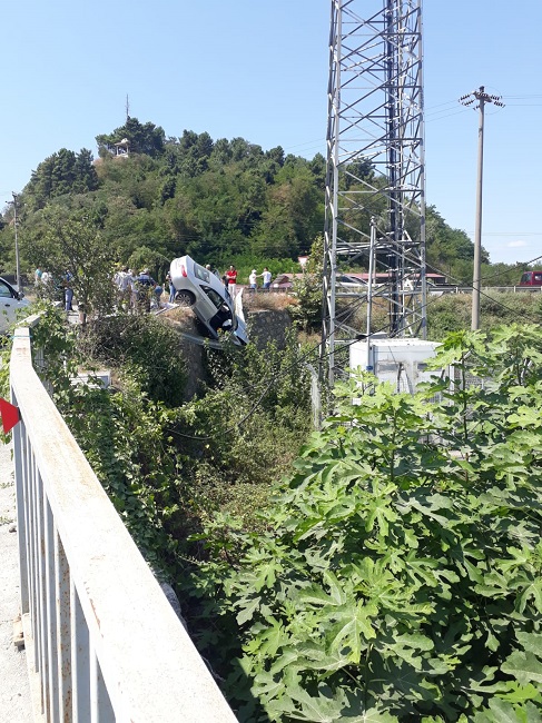 Otomobilin köprüden düşmesine bariyerler engel oldu. Köprüde asılı kalan araçtaki 4 kişi yaralandı. 112 Acil ekibinin ilk müdahalesinin ardından Sakarya Eğitim ve Araştırma Hastanesi'ne kaldırılan yaralılar tedavi altına alındı.