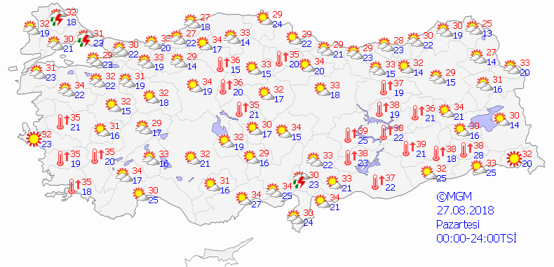 Meteoroloji Genel Müdürlüğü tarafından yapılan son değerlendirmelere göre; Ülkemizin kuzey kesimlerinin parçalı yer yer çok bulutlu, Trabzon'un iç kesimleri ve doğusu, Gümüşhane'nin kuzey, Giresun'un iç kesimleri ile Rize, Artvin, Kars ve Ardahan çevrelerinin kısa süreli ve yerel olmak üzere sağanak ve gök gürültülü sağanak yağışlı, diğer yerlerin az bulutlu ve açık geçeceği tahmin ediliyor.