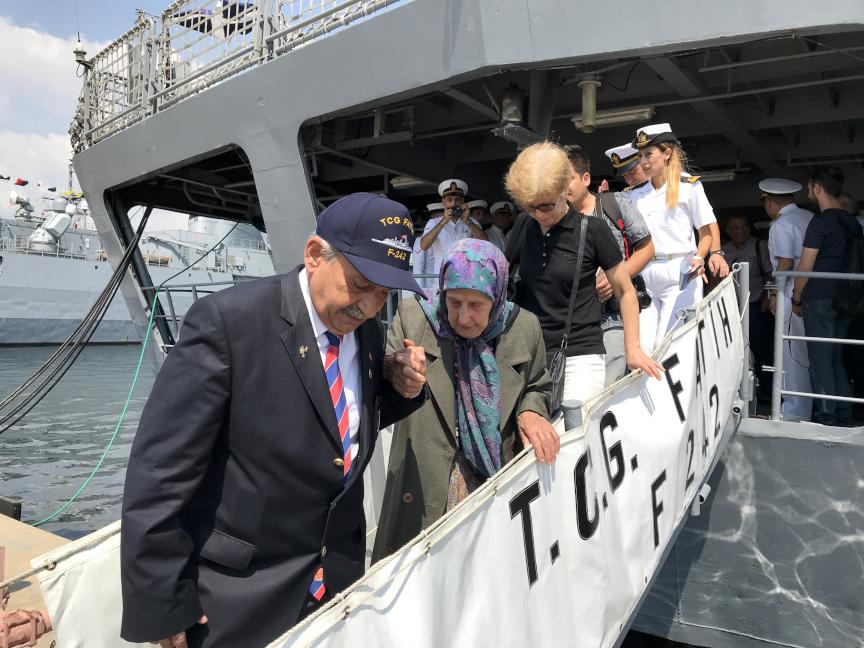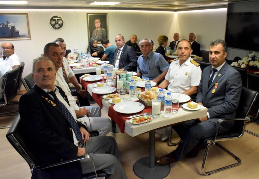 Bu arada, şehit yakınları, Kore ve Kıbrıs ile aralarında terörle mücadelede yaralananların da bulunduğu gazilere TCG Fatih Fırkateyni'nde öğle yemeği verildi.