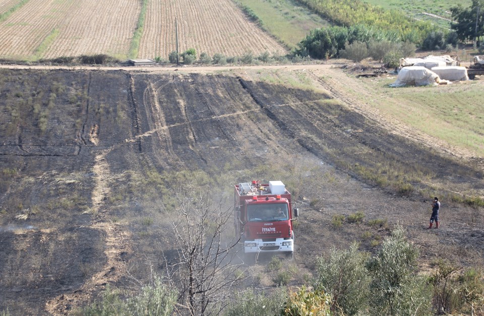 Yangında yaklaşık 25 dönüm anız kaplı arazinin zarar gördüğü belirtildi.