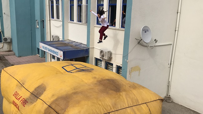 Kimi hastalar merdivenle indirilirken, kimileri de sedyelerle ambulanslara taşındı. Gerçeği aratmayan tatbikatı vatandaşlar meraklı gözlerle izledi. İkinci kattan şişirme yatağa atlayan ve alevleri söndüren hastane çalışanları çevredekilerden alkış aldı.