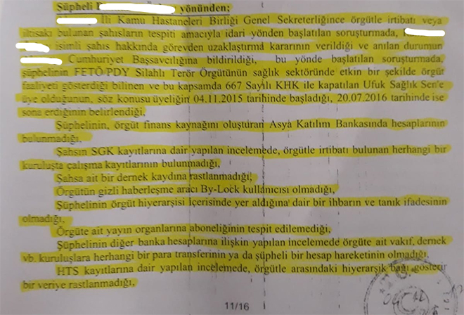 Komisyon, dosyasında sadece 8 aylık sendika üyeliği bulunan ve Savcılıkça hakkında kovuşturmaya yer olmadığına dair karar verilen sağlık personeliyle ilgili olarak göreve iade kararı verdi.