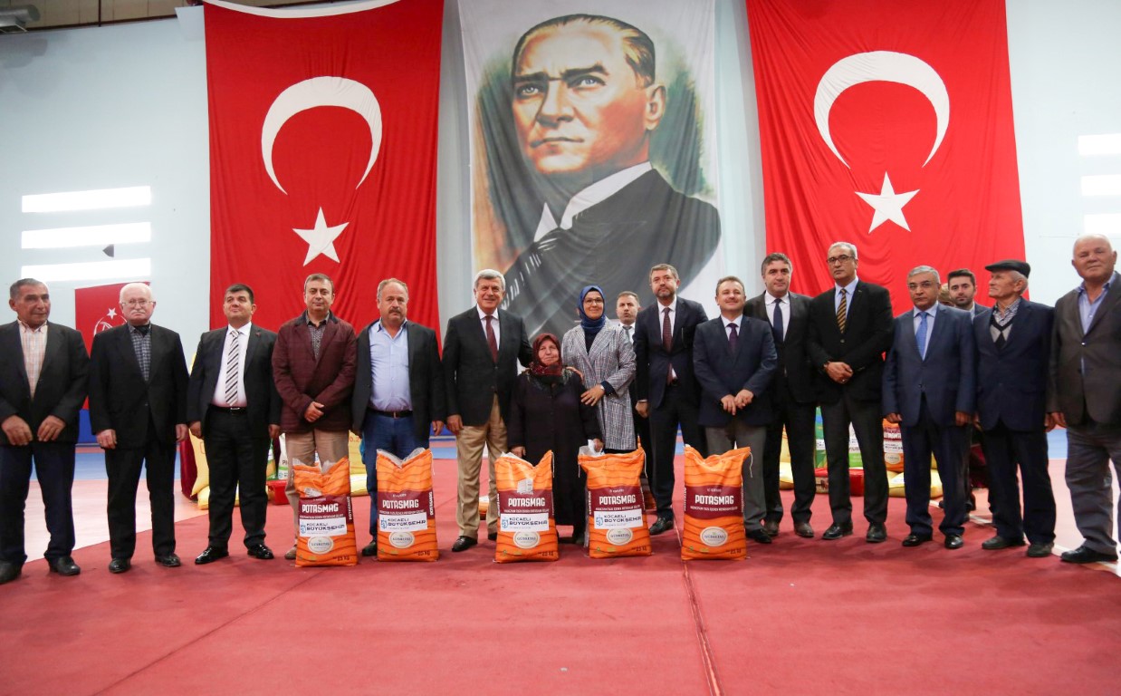 Konuşmaların ardından 2 bin çiftçiye 900 ton gübre teslim edildi.