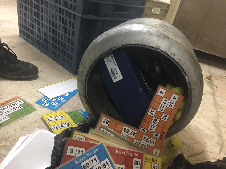 Kontrollerde baskın sırasında delilleri yok etmek amacıyla mutfak tüpüne zulalanmış çok sayıda tombala malzemesi ele geçirildi.