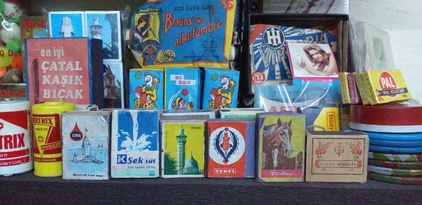 Ben biraz da yerli ürün satımına dikkat çekmek istedim. Ben bu koleksiyonu Anadolu'daki kasabaları gezip kapanmış ve içinde eski ürünler bulunan bakkallardaki malları alarak oluşturdum. 40 yıl öncesi bakkallarda ne satılırsa hepsi var.