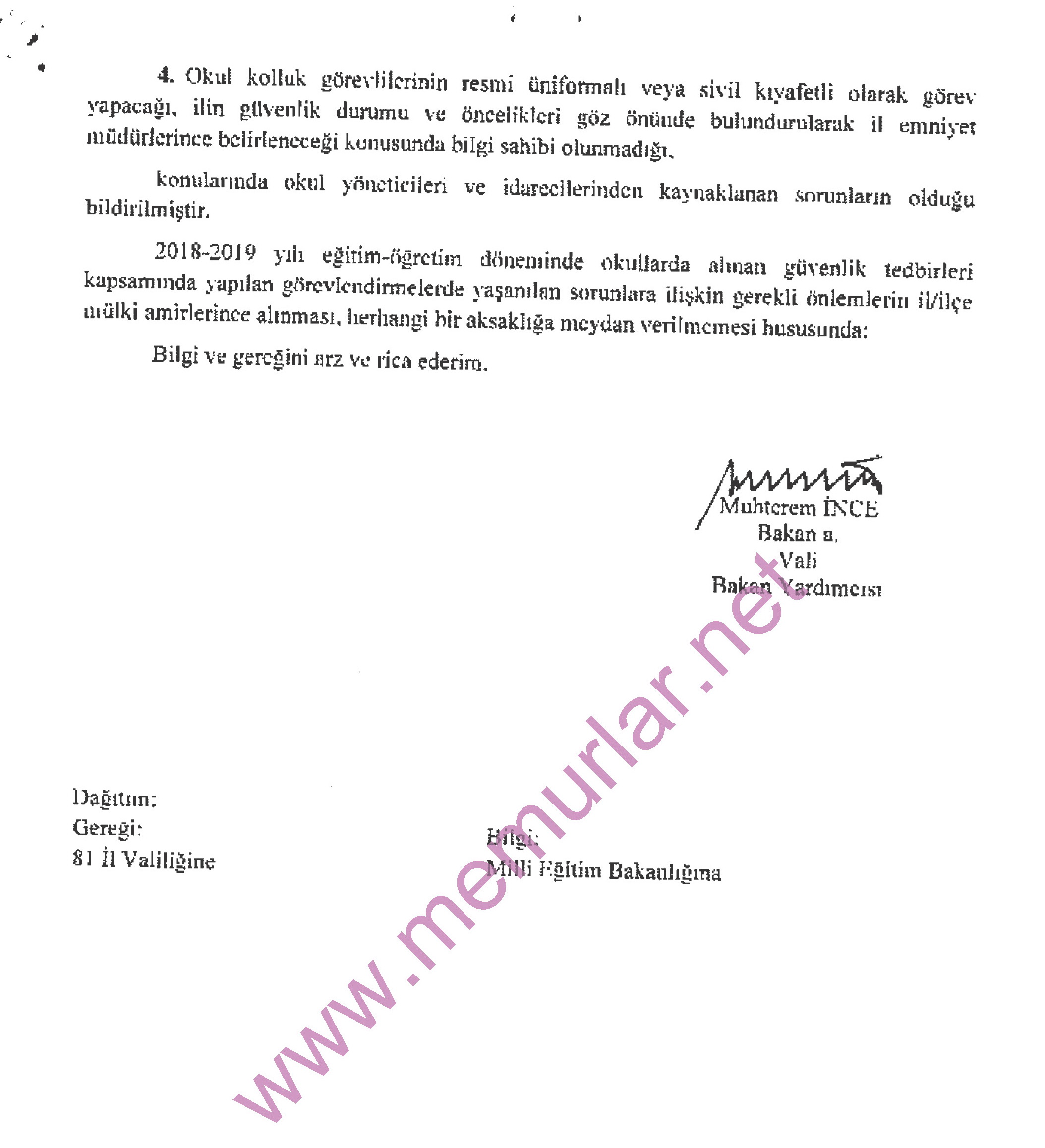 Bu itibarla, okul güvenlik tedbirleri uygulamalarında, yukarıda ve ekte yer alan ilgi yazıda belirtilen sorunlara ilişkin gerekli önlemlerin alınması, herhangi bir aksaklığa meydan verilmemesi önem arz etmektedir.