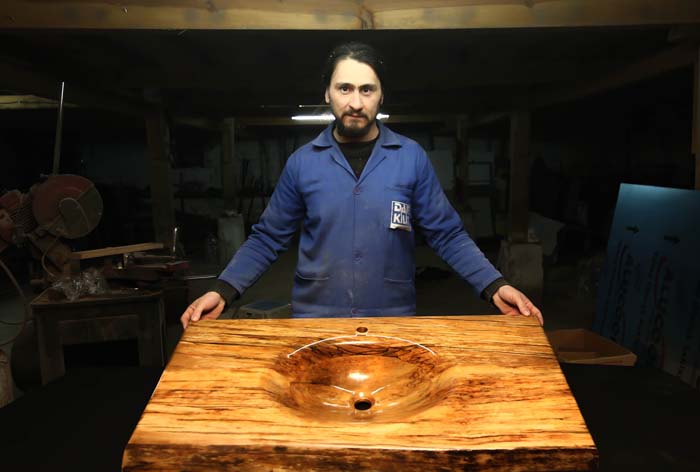 Canbaz, iş yeri ve yemek masaları da ürettiklerini belirterek, ayrıca ahşaptan dekoratif mutfak tezgahları ve lavabolar yaptıklarını, suya dayanıklı olması için ahşabı işledikten sonra özel bir teknikle kapladıklarını ifade etti.