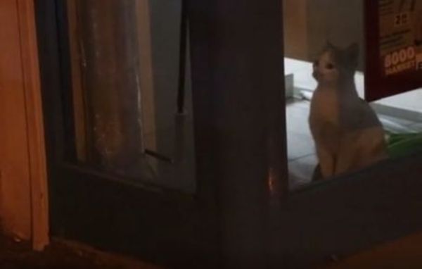 Ekipler, kapıyı açmak için market yetkililerine durumu bildirdi. Markete gelen yetkililerin kapıyı açmasıyla kedi dışarı çıktı.