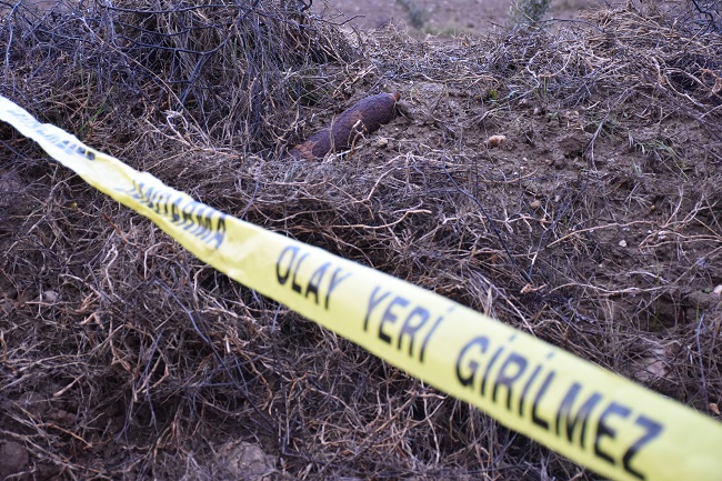 Alınan bilgiye, Hüseyin Erdoğan adlı vatandaş, Dibekdere Mahallesi'ndeki zeytin tarlasının kenarında patlamamış bir top mermisine rastladı.