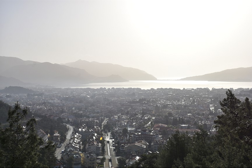 Marmaris'te gece fırtınanın saatteki hızı 105 kilometreye kadar ulaştı. Fırtına nedeniyle bir yük gemisi Marmaris Körfezi'nde bekliyor.