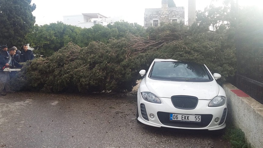 Bodrum ilçesinde, gece kuzeyden saatteki hızı 100 kilometreyi bulan fırtına etkili oldu.