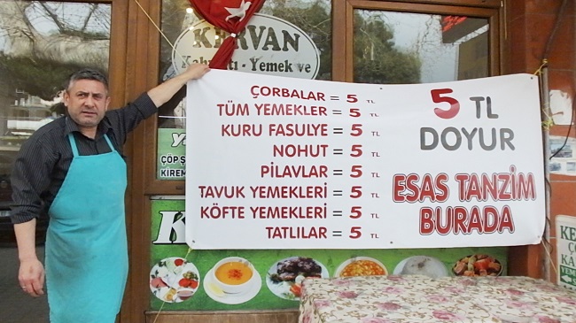 Tanzim olayından sonra bir tanzim yemek salonu olsun dedik. Yani fiyatlarımızda bir tanzim yapalım dedik. Bütün çorbalarımızı, köftelerimizi, etli yemeklerimizi 5 lira yaptık.