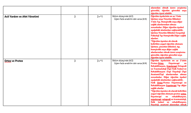 Son olarak, yeni düzenlemeler çerçevesinde fakülte ve bölüm bazlı olarak yükseköğretim kurumlarının yeni asgari kadro sayılarına aşağıdaki tablolardan bakabilirsiniz...